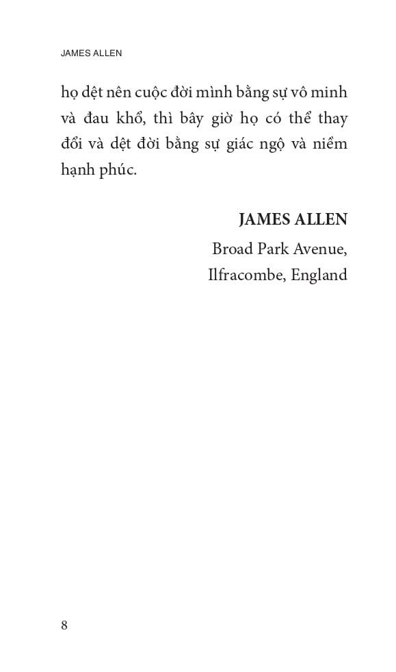 James Allen mô tả cuốn sách đề cập đến sức mạnh của tư duy, và đặc biệt là việc áp dụng tư duy để đạt được hạnh phúc. Ông không đưa ra lý thuyết phức tạp, mà viết bằng trái tim và sự trải nghiệm – để bạn hiểu một cách đơn giản rằng: “Bạn chính là kết quả của những gì bạn nghĩ.”