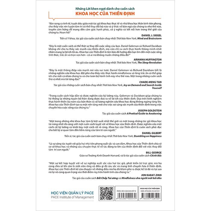 “Một trong những nhà khoa học tâm lý kiệt xuất nhất thế giới và một trong những tác giả khoa học tài năng nhất đã cùng viết một cuốn sách tuyệt vời về khoa học của thiền định. Được nghiên cứu một cách rất kỹ lưỡng và trình bày một cách rất rõ ràng, Khoa học của Thiền định là cuốn sách phải đọc cho bất kỳ ai quan tâm đến tiềm năng của tâm trí con người.” - DANIEL GILBERT; Tiến sĩ, tác giả của cuốn sách bán chạy nhất Thời báo New York, Stumbling on Happiness