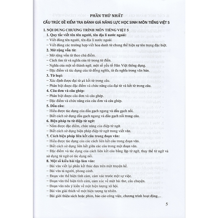 NỘI DUNG Sách - Kiểm tra, đánh giá năng lực học sinh lớp 5 môn Tiếng Việt học kì 1