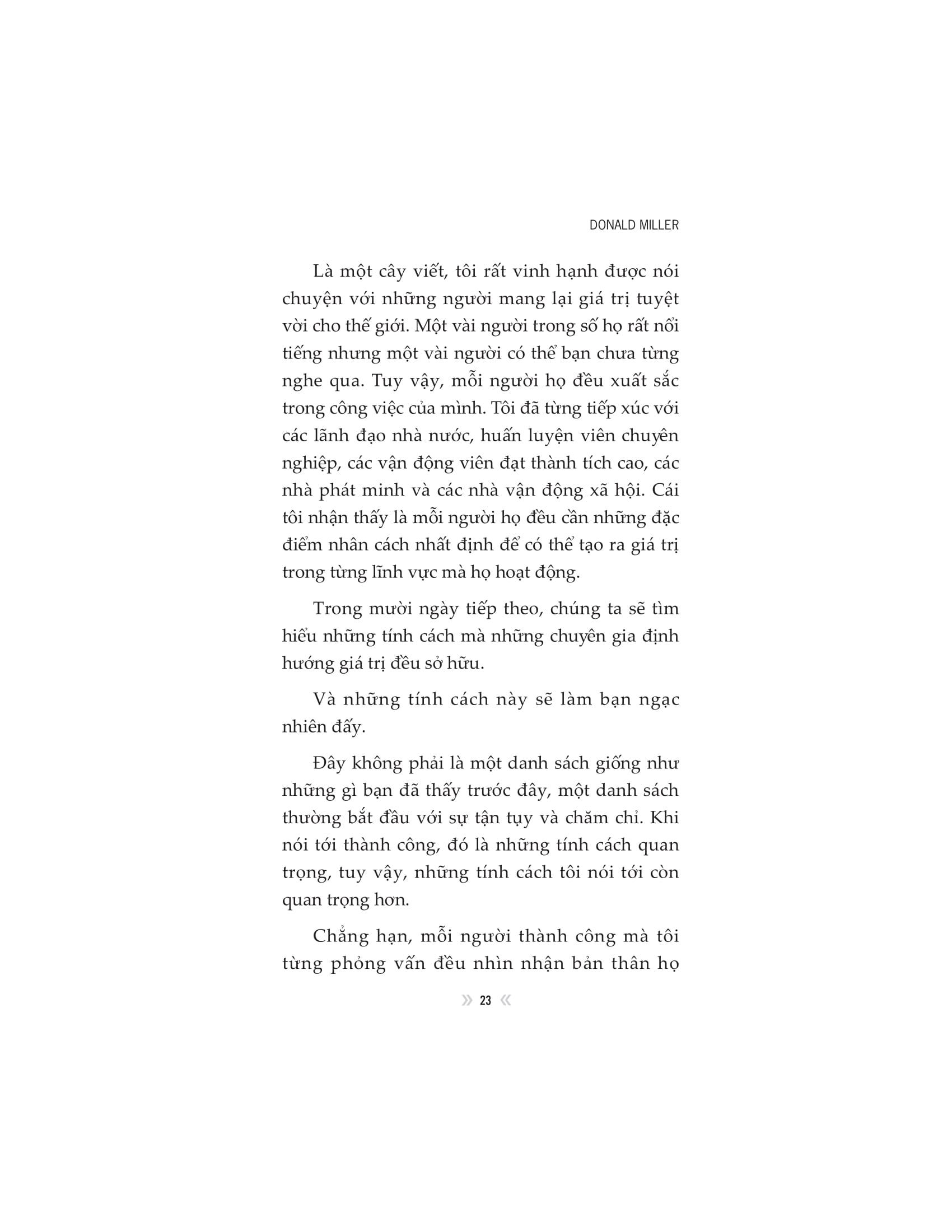 Donald Miller là tác giả và diễn giả người Mỹ. Ông là Giám đốc điều hành của Business Made Simple - một nền tảng trực tuyến giảng dạy về điều hành doanh nghiệp và phát triển bản thân. Ông cũng là người dẫn chương trình Business Made Simple podcast và là tác giả của một số cuốn sách, bao gồm cả những cuốn sách bán chạy nhất như Building a StoryBrand (Xây dựng câu chuyện thương hiệu).