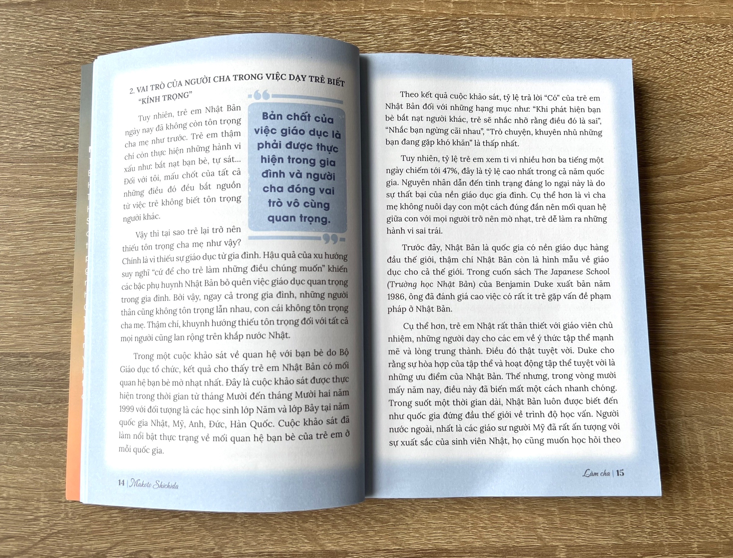 Mua tại TiktokCuốn sách như một bản tóm tắt và thuyết trình chuẩn mực cho các ông bố bận rộn với trăm ngàn lý do khác nhau để thay đổi cách nhìn nhận của họ về vai trò của người làm cha. Sự thay đổi cách nhìn nhận của người cha và sự tham gia tích cực hơn trong việc nuôi dạy con có thể đạt được kết quả ngay tức khắc, chứ không cần phải "chờ con lớn hơn chút nữa". (Theo Viện giáo dục Shichida Việt Nam)