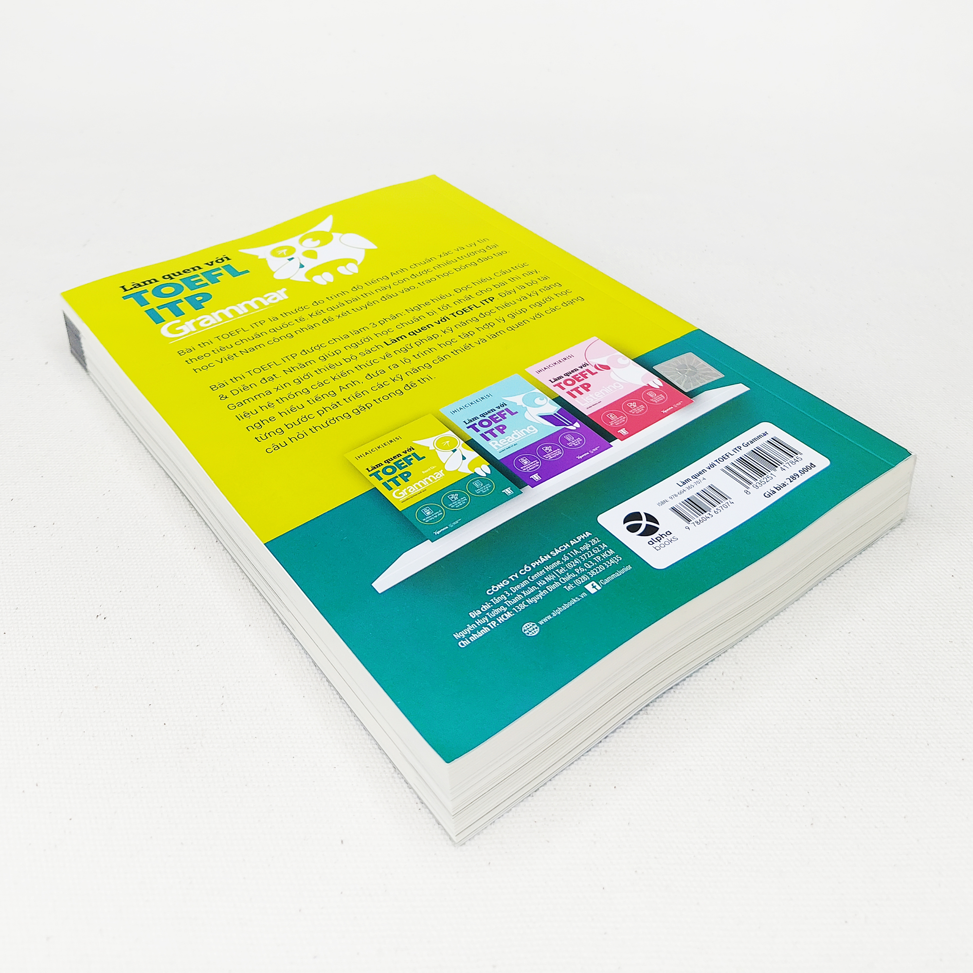 Làm quen với TOEFL ITP Grammar là cuốn sách học ngữ pháp nằm trong bộ sách Làm quen với TOEFL ITP do Gamma xuất bản. Đúng như tên gọi, cuốn sách dành cho người mới bắt đầu học tiếng Anh với mong muốn trau dồi kiến thức từ cơ bản đến nâng cao để có thể chinh phục những bài thi học thuật, đặc biệt là bài thi TOEFL ITP. Cuốn sách được sắp xếp khoa học, với 18 chương bài học được chia thành 4 phần: cấu trúc câu, từ loại, cụm từ và mệnh đề, và cấu trúc ngữ pháp, sẽ giúp người học nắm bắt hệ thống ngữ pháp một cách chính xác và tự củng cố kiến thức đã học thông qua các câu hỏi và bài tập đa dạng đi kèm. Bên cạnh các kiến thức về ngữ pháp, sách còn khai thác và phân tích các câu hỏi thường xuyên xuất hiện trong bài thi, tổng hợp các lỗi sai mà người học có thể gặp phải ở bài thi thực tế. Ngoài ra, ở cuối sách sẽ là phần đáp án, dịch nghĩa, giải thích chi tiết các dạng câu hỏi để người học tự kiểm tra kiến thức của bản thân.
