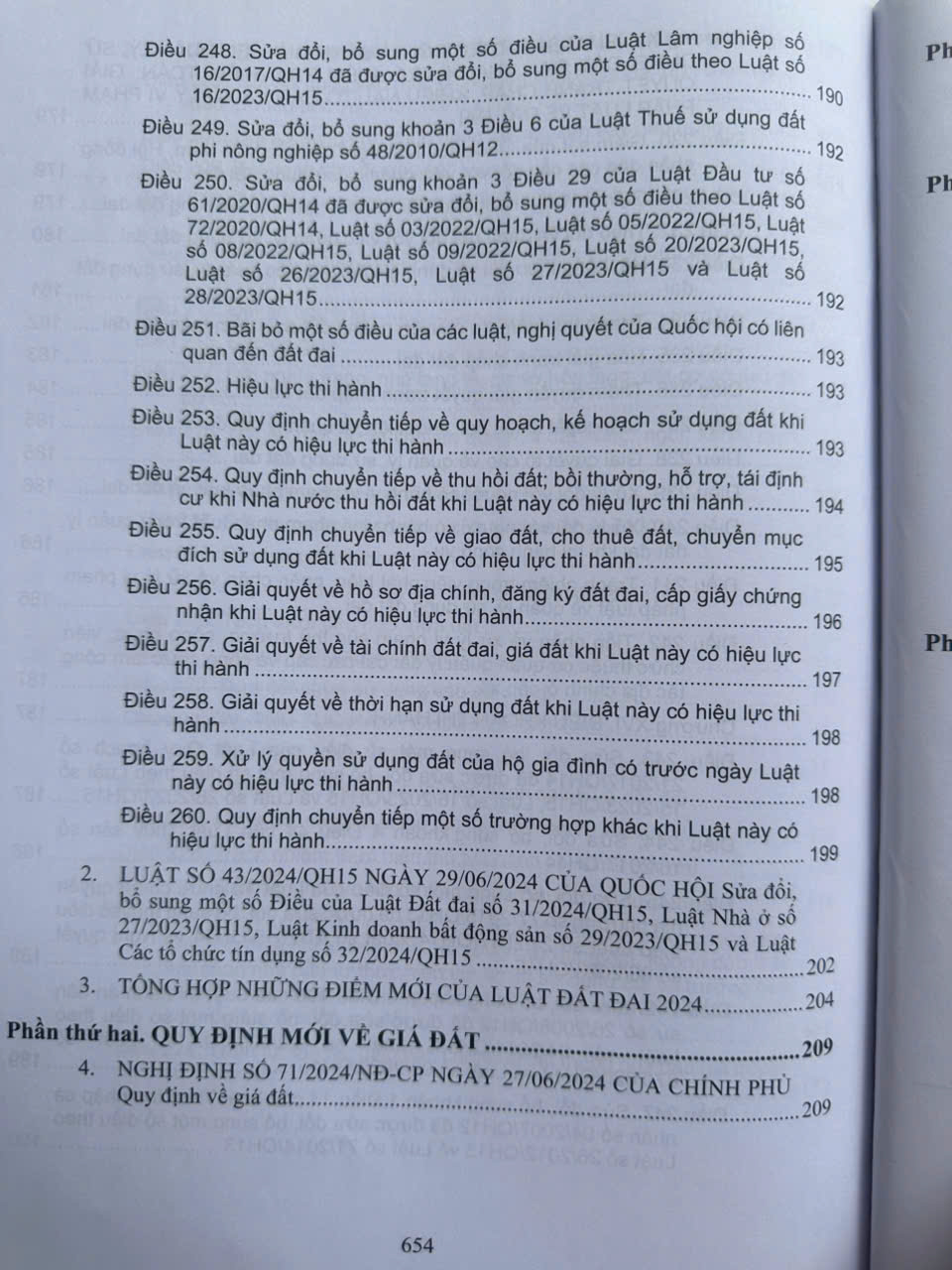 Luật Đất đai số 31/2024/QH15 đã được Quốc hội khóa XV thông qua ngày 18/01/2024. Luật Đất đai số 31/2024/QH15 gồm 16 chương, 260 điều, trong đó sửa đổi, bổ sung 180/212 điều của Luật Đất đai năm 2013 và bổ sung mới 78 điều.
