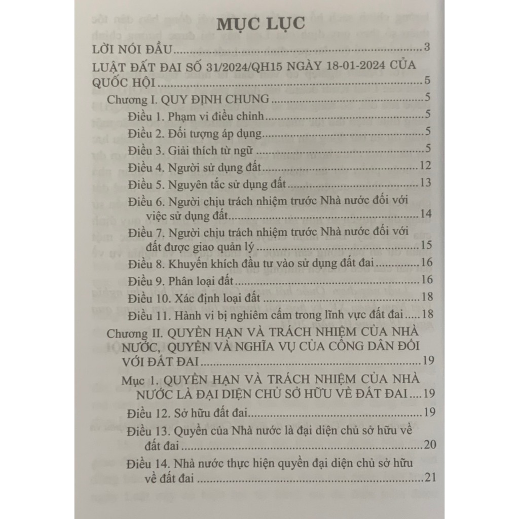 Sách - Luật Đất đai (Hiện hành) (Được Quốc hội thông qua ngày 18-01-2024, có hiệu lực từ ngày 01-01-2025)