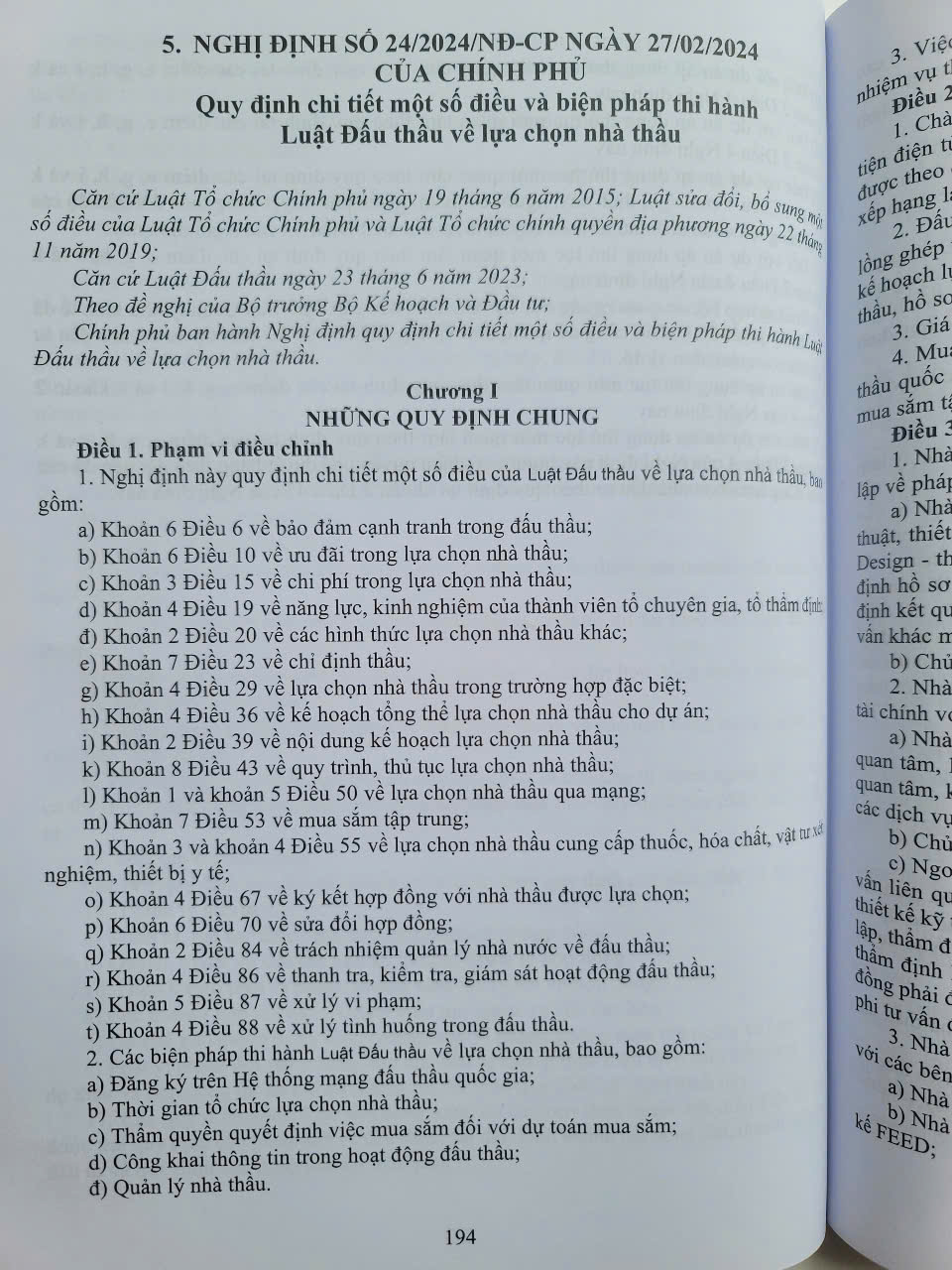 Ngày 23/06/2023 Luật Đấu thầu (sửa đổi) được Quốc hội thông qua. Luật có hiệu lực từ 01/01/2024. Sau đó Chính phủ, Bộ Kế hoạch và đầu tư cũng đã ban hành nhiều quy định chi tiết hướng dẫn thi hành Luật Đấu thầu và các quy định mới về lựa chọn nhà thầu, nhà đầu tư như Nghị định số 17/2025/NĐ-CP ngày 06/02/2025 Sửa đổi, bổ sung một số điều của các Nghị định quy định chi tiết một số điều và biện pháp thi hành Luật Đấu thầu, Nghị định số 115/2024/NĐ-CP ngày 16/09/2024 Quy định chi tiết một số điều và biện pháp thi hành Luật Đấu thầu về lựa chọn nhà đầu tư thực hiện dự án đầu tư có sử dụng đất, Thông tư số 22/2024/TT-BKHĐT ngày 17/11/2024 Hướng dẫn việc cung cấp, đăng tải thông tin về lựa chọn nhà thầu và mẫu hồ sơ đấu thầu trên hệ thống mạng đấu thầu quốc gia…