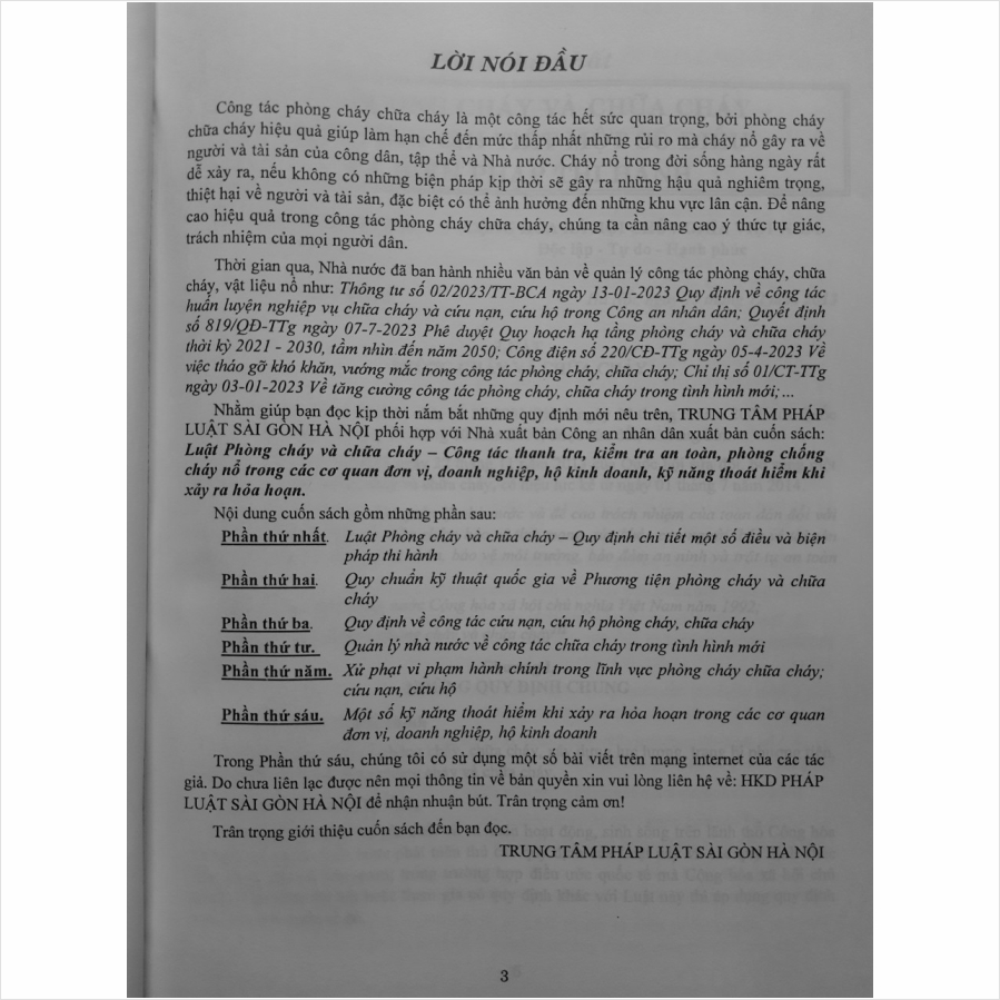 Nhằm phổ biến đến Quý Cơ quan, Đơn vị và Quý khách hàng thân thiết nắm bắt kịp thời những quy định mới nêu trên. Nhà sách Nam Việt xin trân trọng giới thiệu cuốn sách: Luật Phòng Cháy Và Chữa Cháy – Công Tác Thanh Tra, Kiểm Tra An Toàn, Phòng Chống Cháy Nổ Trong Các Cơ Quan Đơn Vị, Doanh Nghiệp, Hộ Kinh Doanh, Kỹ Năng Thoát Hiểm Khi Xảy Ra Hỏa Hoạn