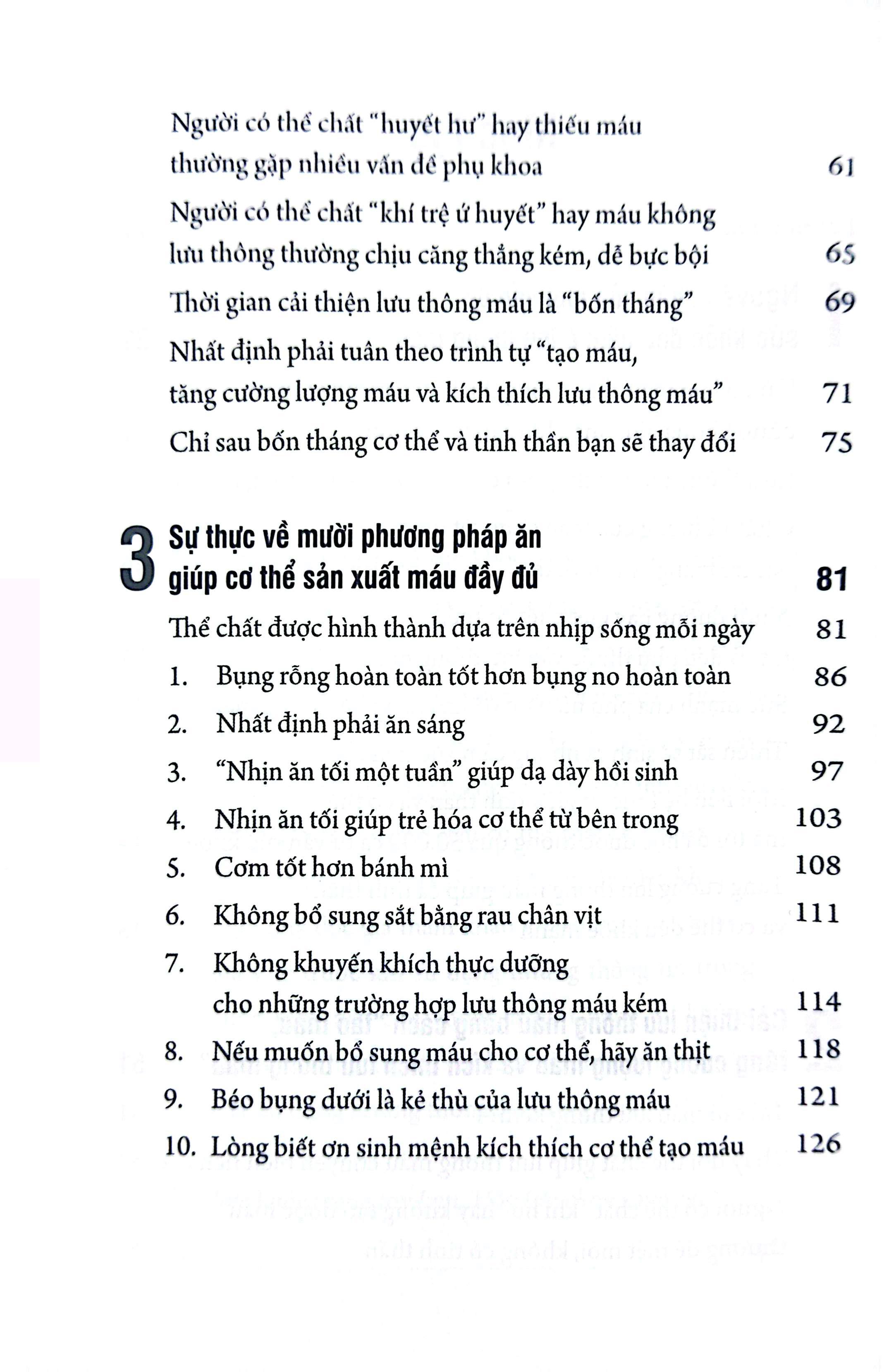 Với kinh nghiệm là đời thứ tư của hiệu thuốc Đông y cổ truyền 90 năm tuổi, c.hữa trị cho khoảng 50.000 trường hợp bệnh nhân trên khắp nước Nhật và cả nước ngoài, từ đau bụng kinh, lạc nội mạc tử cung, vô sinh hiếm muộn đến trầm cảm, làm đẹp và giảm cân, tác giả hoàn toàn có đủ tự tin cho luận điểm của m.ình. Không giống như phương pháp c.hữa trị Tây y, c.hữa trị Đông y đòi hỏi Akiyoshi Horie phải dành hàng giờ để khám và chẩn đoán, theo dõi sát sao mức độ cải thiện thể chất và tinh thần của người bệnh và mỗi đơn thuốc là sự kết hợp của hàng trăm loại thảo dược khác nhau. Trong suốt quá trình tích góp kinh nghiệm chậm rãi và phong phú trong hơn một thập kỷ, Akiyoshi Horie nhận ra được sự liên hệ mật thiết giữa cơ thể với tinh thần và việc lưu thông máu thật sự ảnh hưởng triệt để đến thân-tâm ta mỗi ngày.