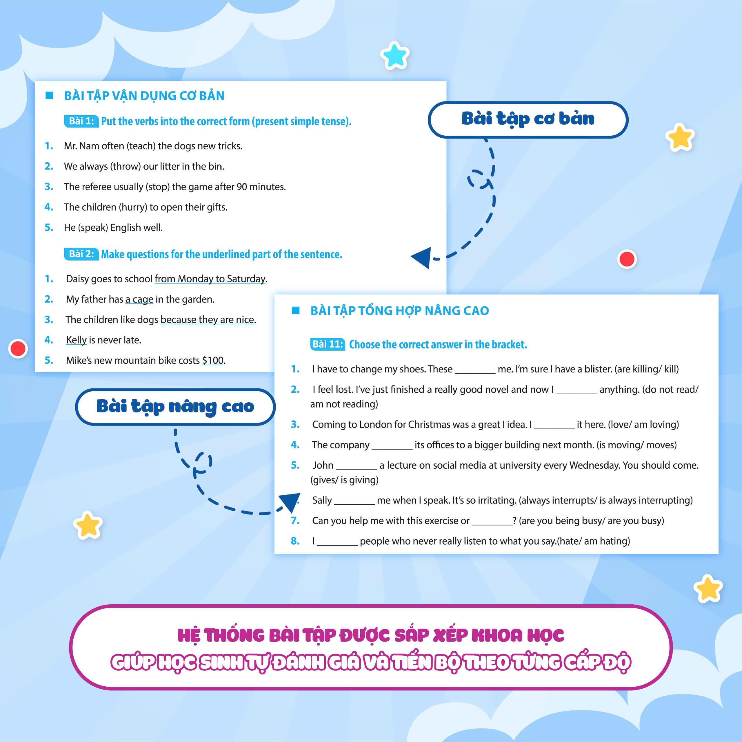- Hệ thống bài tập sắp xếp khoa học giúp em đánh giá chính xác năng lực và sự tiến bộ của mình theo từng cấp độ