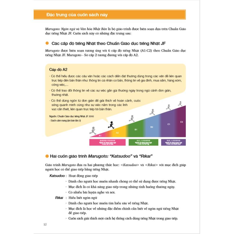 Marugoto là một giáo trình công phu và đầy tâm huyết của Nhật Bản với mong muốn phổ cập và nâng cao tiếng Nhật cho người nước ngoài ở khắp thế giới. Giáo trình được triển khai dựa trên Chuẩn Giáo dục tiếng Nhật JF. Tựa đề Marugoto, có nghĩa là “trọn vẹn”, đó cũng chính là thông điệp mà Quỹ Giao lưu Quốc tế Nhật Bản muốn gửi đến quý độc giả: sự kết hợp hài hòa giữa ngôn ngữ và văn hóa. Giáo trình này giới thiệu những tình huống giao tiếp thực tế, giúp người học trải nghiệm nhiều khía cạnh đa dạng của văn hóa Nhật Bản và đặc trưng trong đời sống của người Nhật một cách trọn vẹn.