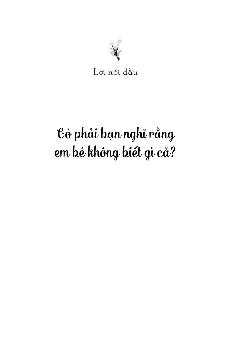 Lời giới thiệu: Có phải bạn nghĩ rằng em bé không biết gì cả Chương 1: Em bé chọn bố mẹ để sinh ra Chương 2: Hãy trò chuyện với em bé trong bụng mẹ Chương 3: Sinh con thật là hạnh phúc Chương 4: Sau khi sinh vẫn chưa muộn Chương 5: Những điều thật sự quan trọng trong việc nuôi dạy con Chương 6: Sinh con là một cột mốc trên con đường nuôi dạy con Mẩu chuyên: Nào, hãy cùng nghe các bé kế câu chuyện của m.ình nhé!