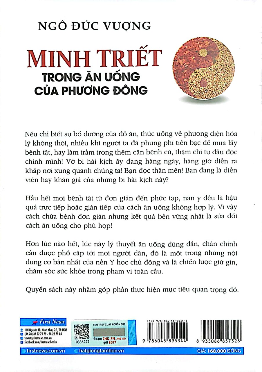 Cơ thể được xây đắp bởi đồ ăn thức uống hàng ngày, nguồn năng lượng cho chúng ta hoạt động cũng từ đó. Vì vậy, hiểu biết Minh triết trong Ăn uống của phương Đông là điều vô cùng cần thiết. Tác giả Ngô Đức Vượng từ lâu đã quan tâm tới vấn đề này. Ông đã ăn chay trường, ăn gạo lứt muối vừng, nhịn ăn chữa bệnh cho chính mình và giúp cho nhiều người thực hành tự chữa bệnh, dưỡng sinh, nâng cao sức khỏe, thu nhiều kết quả tốt đẹp từ nhiều năm nay. Với thiện chí đem lại sức khỏe và trị bệnh không dùng thuốc, ít tốn kém, dễ thực hành…cho cộng đồng, tác giả đã viết cuốn sách này, nhằm cống hiến cho bạn đọc những lời khuyên quý giá và đáp ứng những nhu cầu cần thiết cho độc giả.
