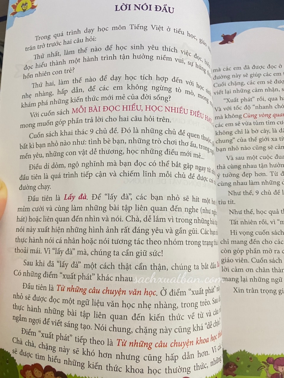 Hy vọng cuốn sách MỖI BÀI ĐỌC HIỂU, HỌC NHIỀU ĐIỀU HAY không chỉ mang đến cho các bạn nhỏ những trải nghiệm mới mẻ về việc đọc hiểu mà còn góp phần mở ra cái nhìn mới về dạy học tích cực, dạy học lạc quan đối với giáo viên. Cuốn sách có sử dụng cho một số tư liệu từ nguồn Internet. Xin được gửi lời cảm ơn chân thành, sâu sắc tới các tác giả đã góp phần giúp cuốn sách này mang lại những ngữ liệu phong phú và trải nghiệm thú vị cho các bạn nhỏ.