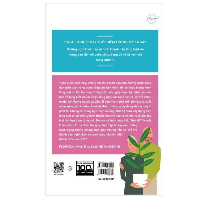 [ThaiHaBooks] Cuốn sách sẽ dẫn dắt bạn theo ba khía cạnh quan trọng: CON SỐ BẢY, NGHI THỨC, và LÒNG BIẾT ƠN. Tác giả liệt kê ra 7 khoảnh khắc trong ngày và chọn ra bảy hành động cho mỗi khoảnh khắc với hy vọng rằng chúng sẽ trở thành thói quen thường nhật mới của bạn.