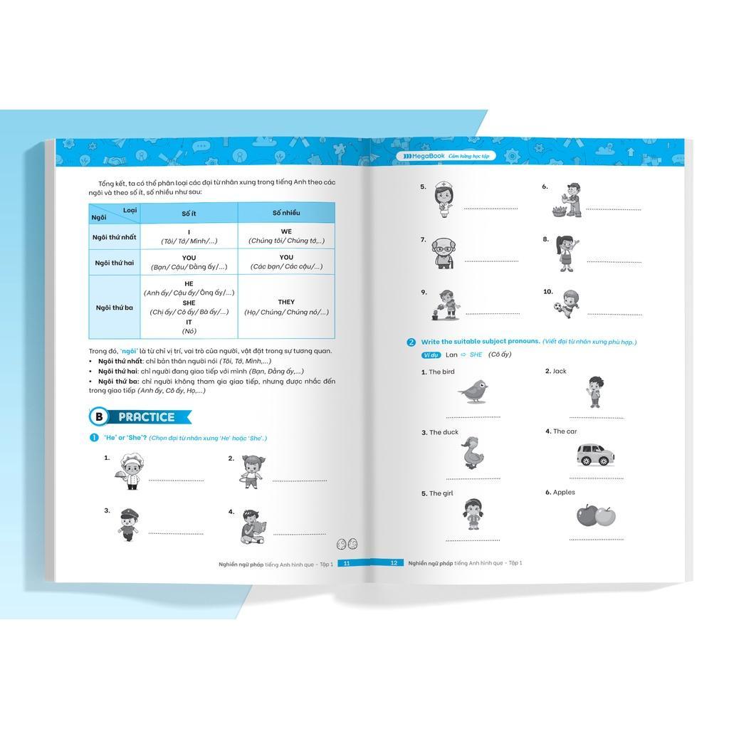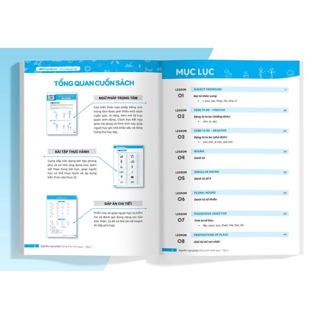 ✨Sách - Nghiền Ngữ Pháp Tiếng Anh Hình Que - Tập 1 - Cơ Bản - Megabook