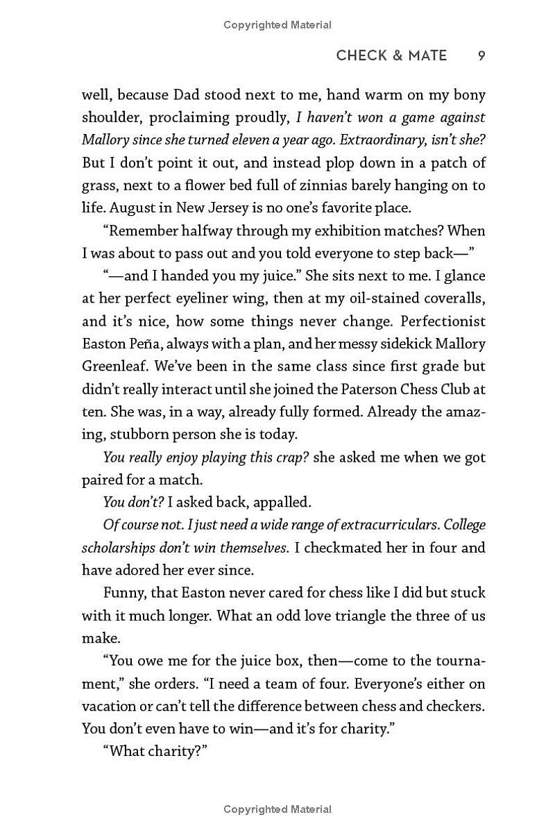 Mallory Greenleaf is done with chess. Every move counts nowadays; after the sport led to the destruction of her family four years earlier, Mallory’s focus is on her mom, her sisters, and the dead-end job that keeps the lights on. That is, until she begrudgingly agrees to play in one last charity tournament and inadvertently wipes the board with notorious “Kingkiller” Nolan Sawyer: current world champion and reigning Bad Boy of chess.