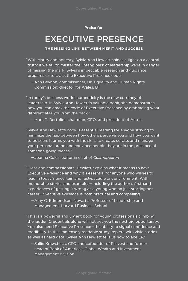 Executive Presence 2.0 In this updated and expanded edition of her celebrated book Executive Presence: The Missing Link Between Merit and Success, one of the world’s most influential business thinkers reveals the qualities essential to