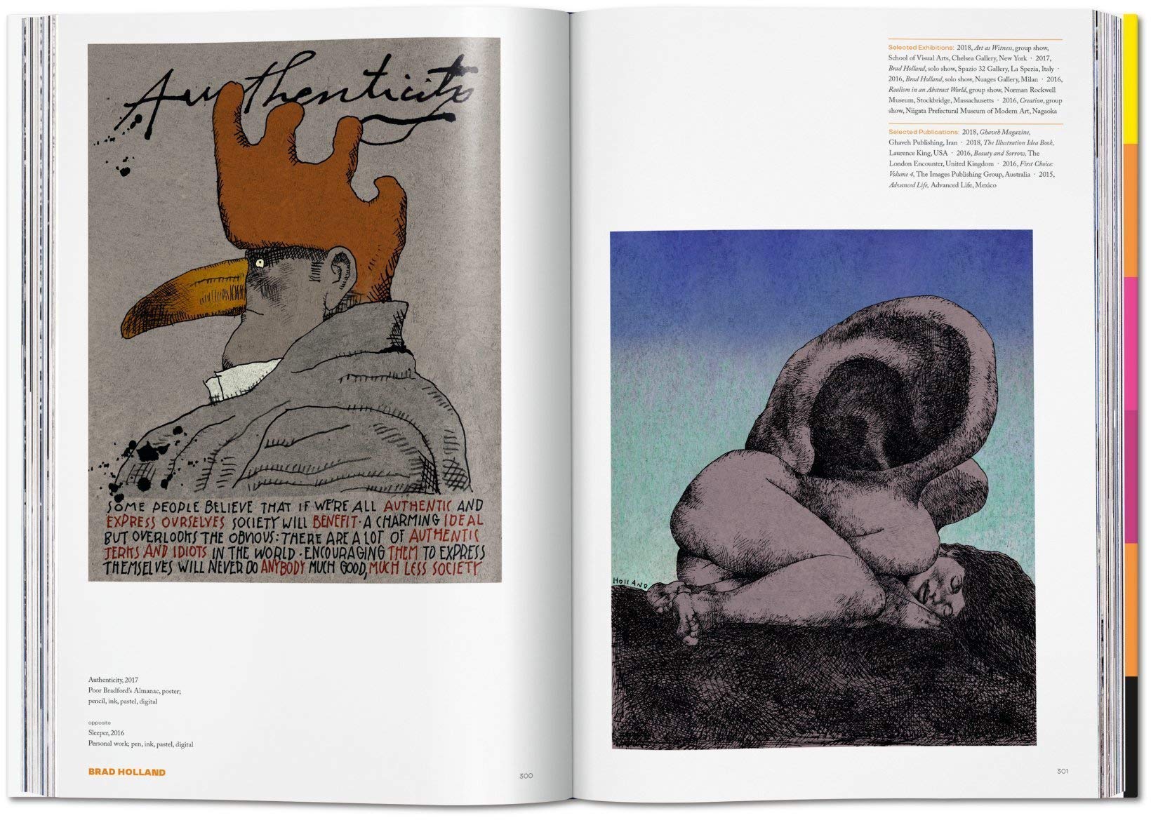 This book celebrates the sheer quality, diversity, intensity, comedy, vivacity, and exceptionality of the work being created by illustrators right now. From veteran artists like Brad Holland, whose oblique and metaphorical paintings for the New York Times’ op-ed section revolutionized illustrative content in the 1970s, to up-and-coming stars like Robin Eisenberg, her pastel-skinned alien belles cruising in spaceships on indie-rock album covers, the 100 artists in this collection are just the tip of the proverbial iceberg, but they represent a compelling snapshot of the styles, techniques, and use of color by artists across the world. We dare you to pick your favorites.