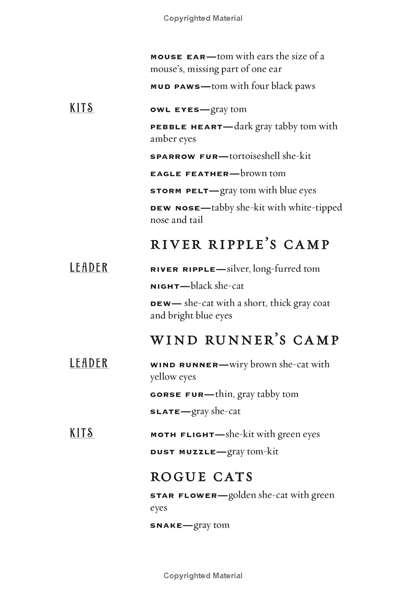 The spirit-cats have spoken: to survive, the cats from the mountains must grow and spread like the Blazing Star. Clear Sky believes the only way to grow is to band together again, but few cats are willing to ally with him. While Tall Shadow plans to establish a new camp in the pine forest, River Ripple is content by the water, and Wind Runner has made her own home on the moor.