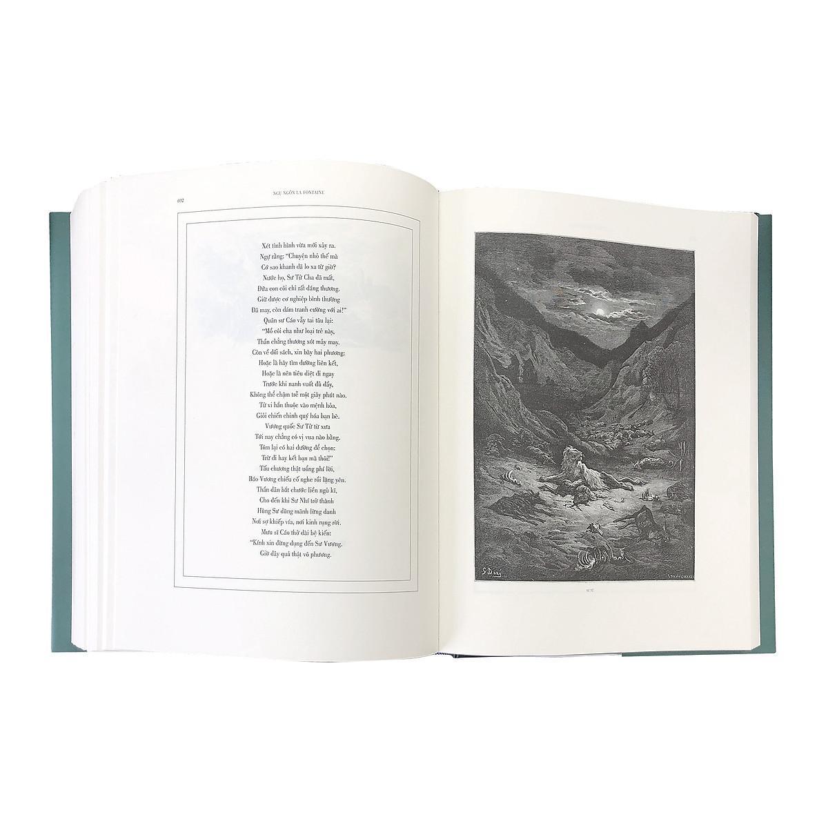 Ngụ ngôn La Fontaine – Toàn tập ngụ ngôn với bản dịch của các thế hệ dịch giả Việt NamTác giả: La FontaineNhiều dịch giảMinh hoạ: Gustave DoréKích thước: 25 x 30 cmSố trang: 828 trangHình thức: Bìa cứng, in hai màu. Khối lượng: 3.900 grSách do Công ty Cổ phần Văn hóa Đông A và NXB Văn học liên kết ấn hànhPhát hành: 01/2022