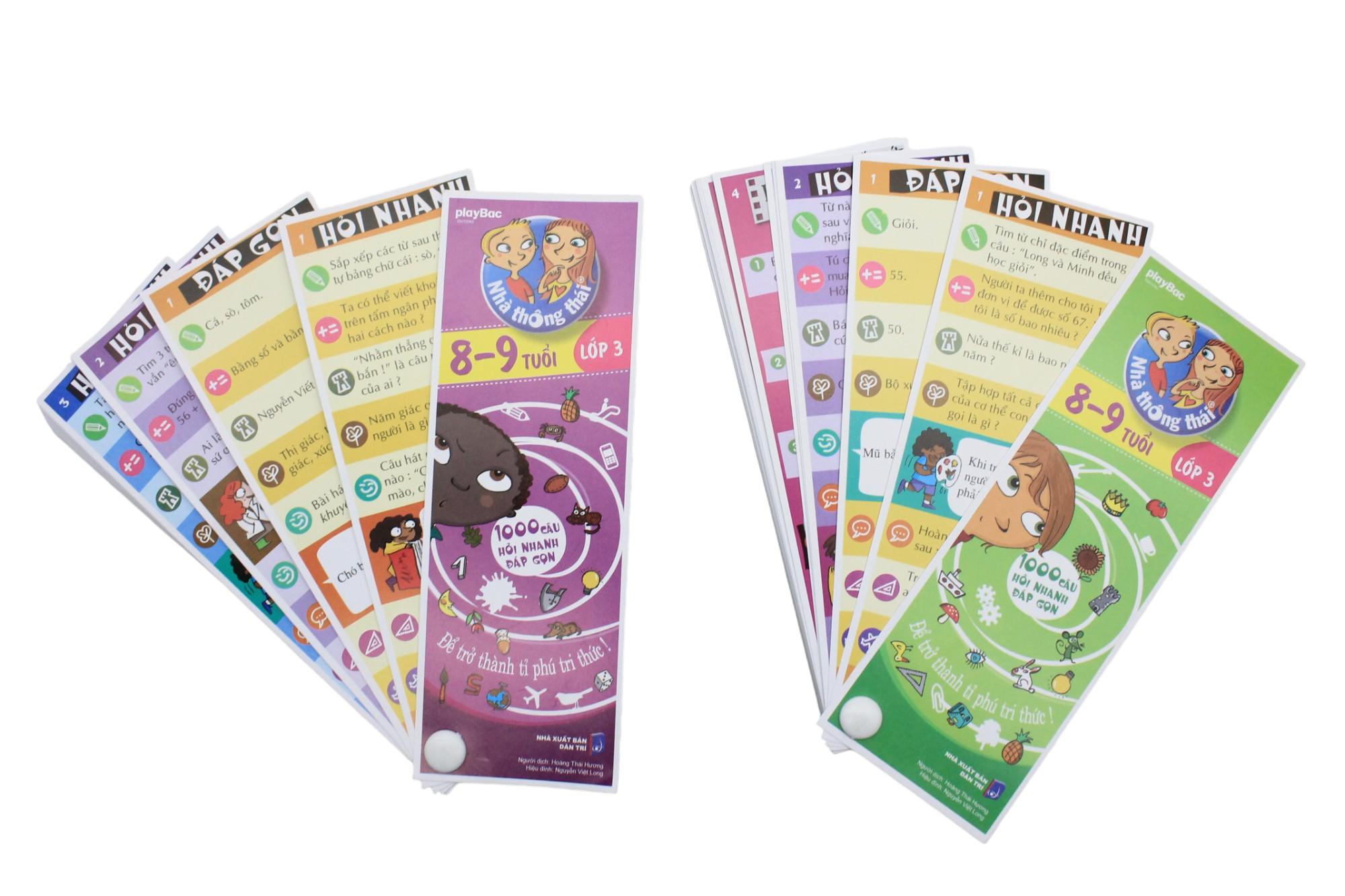 Mỗi trang sách đều được thiết kế theo hình chiếc quạt thông minh, gồm các tấm thẻ Hỏi nhanh - Đáp gọn xen kẽ nhau. Với 1000 câu đố thú vị về nhiều lĩnh vực khác nhau như Ngữ pháp - chính tả, Khoa học - thiên nhiên, Số học, Từ vựng, Lịch sử, Giải trí, Hình học - công nghệ, Địa lý, Ngôn ngữ - các nền văn minh,Nhà thông thái Lớp 3là công cụ đắc lực để giúp các em học sinh lớp 3 chơi mà học hiệu quả.
