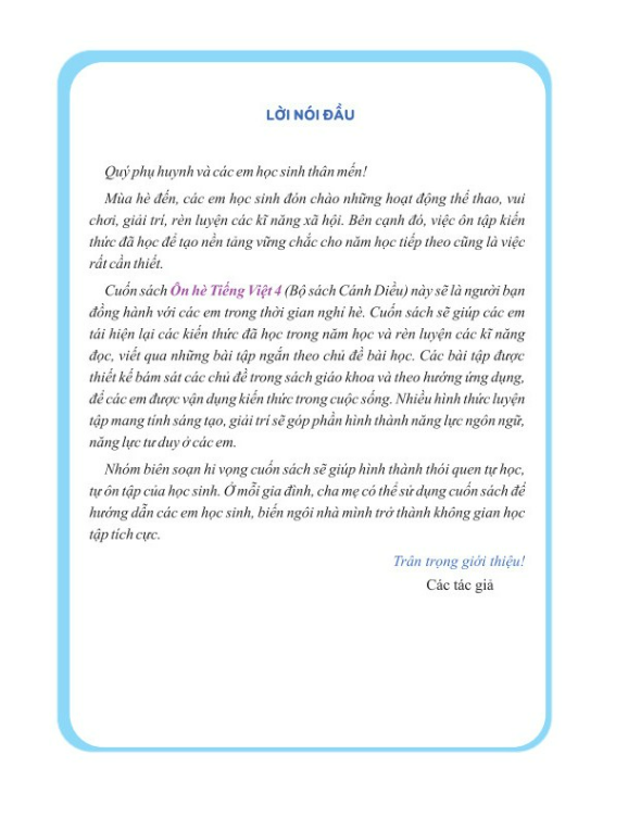 Nhóm biên soạn hi vọng cuốn sách sẽ giúp hình thành thói quen tự học, tự ôn tập của học sinh. Ở mỗi gia đình, cha mẹ có thể sử dụng cuốn sách để hướng dẫn các em học sinh, biến ngôi nhà mình trở thành không gian học tập tích cực.