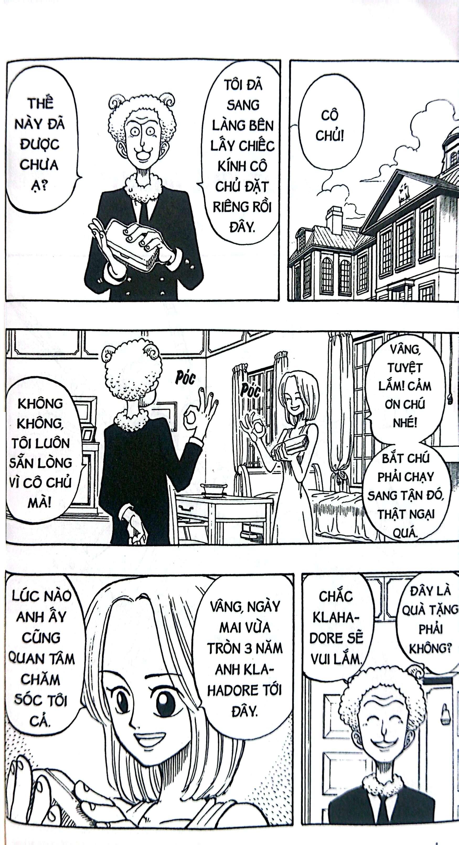 One Piece - Tập 4 - Trăng Lưỡi Liềm Ngôi làng bình yên của Usopp bị hải tặc nhắm đến! Biết trước sự việc, nhóm Luffy đã quyết định ngăn chặn ý định tấn công của bọn chúng. Thế nhưng chờ mãi chẳng thấy tên nào, trong khi ở bờ biển kế bên lại có tiếng la hét…!? “Tôi có một mơ ước. Phải, đó là vẽ bậy lên mặt chó. “Vẽ râu cho nó nhé?” “Cho nó thành gấu trúc được không?” Đã không biết bao lần tôi hỏi vậy mỗi khi nhìn thấy chó nhà bạn, nhưng cậu ta không cho tôi làm, còn nói “Tự nuôi lấy một con mà vẽ đi”. Nhưng tôi không bao giờ muốn nuôi một con chó kì quặc như thế.” – EIICHIRO ODA