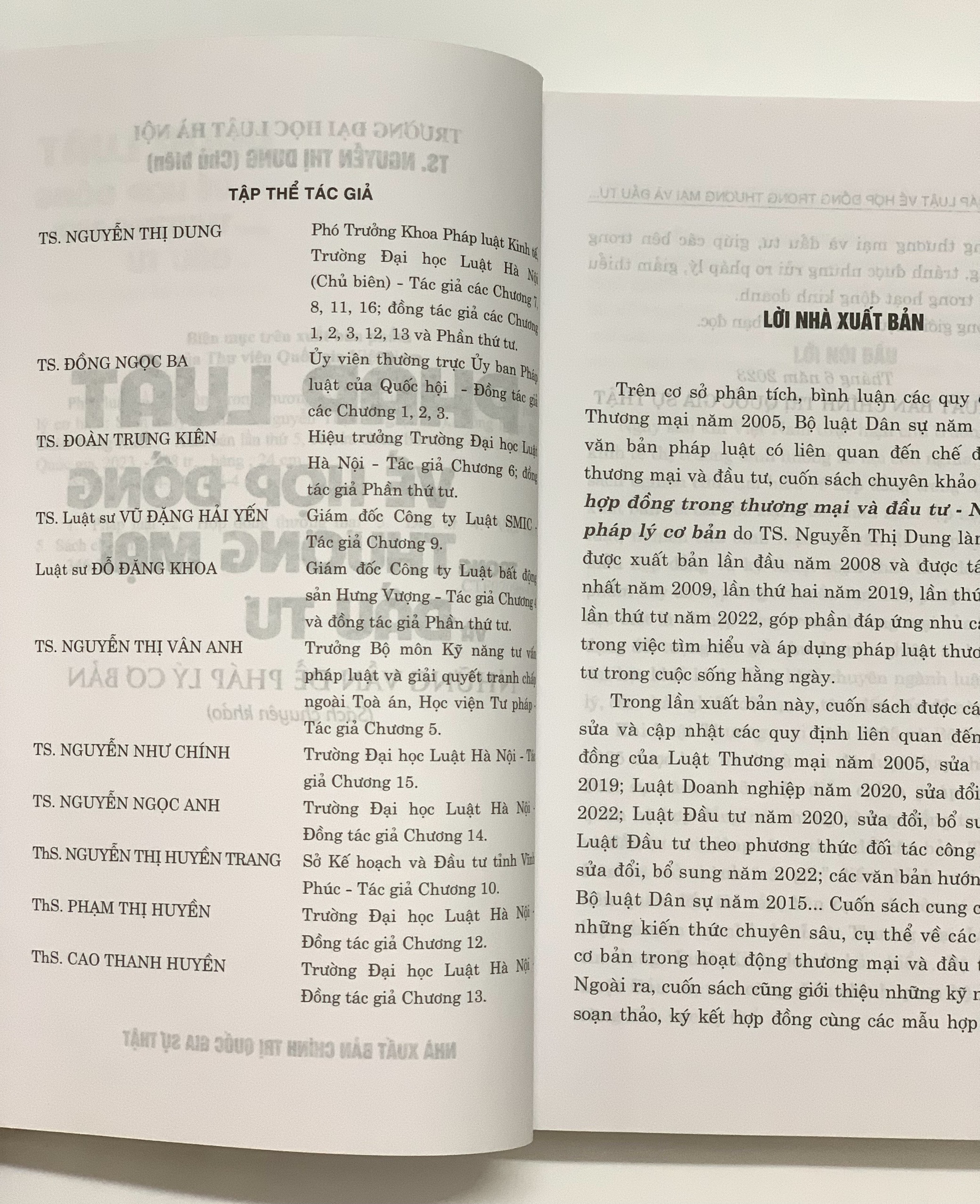 Công ty phát hành: Công ty TNHH Thương mại và Dịch vụ Văn hóa Hà Nội Tác Giả: TS. Nguyễn Thị Dung NSX - NXB: Chính Trị Quốc Gia Sự Thật Ngôn Ngữ: Tiếng Việt Loại Sản Phẩm: SÁCH PHÁP LUẬT Kích Thước: 16 x 24 cm Hình Thức: Bìa mềm Số Trang: 707 Năm Xuất Bản: 2023 Trên cơ sở phân tích, bình luận các quy định của luật thương mại năm 2005 ,bộ luật dân sự năm 2005 cùng các văn bản pháp luật có liên quan đến chế định hợp đồng thương mại và đầu tư cuốn sách chuyên khảo pháp luật về hợp đồng trong thương mại và đầu tư cuốn sách chuyên khảo” Pháp Luật Về Hợp Đồng Trong Thương Mại Và Đầu Tư-Những Vấn Đề Pháp Lý Cơ Bản do TS. Nguyễn Thị Dung làm chủ biên, góp phần đáp ứng nhu cầu của bạn đọc trong tìm hiểu và áp dụng thương mại và đầu tư trong cuộc sống hằng ngày. Trong lần xuất bản này cuốn sách để được các tác giả chỉnh sửa và cập nhật quy định liên quan đến chế định hợp đồng của Luật thương mại năm 2005 sửa đổi bổ sung năm 2017,2019, luật doanh nghiệp 2020 sửa đổi bổ sung năm 2022 được đầu tư 2020 sửa đổi bổ sung năm 2022 luật đầu tư theo phương thức đối tác công tư năm 2020 sửa đổi bổ sung năm 2022 ,bộ luật dân sự 2015 …cùng các văn bản hướng dẫn thi hành .Cuốn sách cung cấp cho bạn đọc những kiến thức chuyên sâu, cụ thể về các loại hợp đồng cơ bản trong hoạt động thương mại và đầu tư tại nước ta cũng rất cũng giới thiệu những kỹ năng cơ bản khi soạn thảo hợp đồng cùng các mẫu hợp đồng phổ biến trong hoạt động thương mại và đầu tư sức các bên trong hoạt động phòng tránh được những rủi ro pháp lý giảm thiểu các tranh chấp trong hợp đồng kinh doanh.