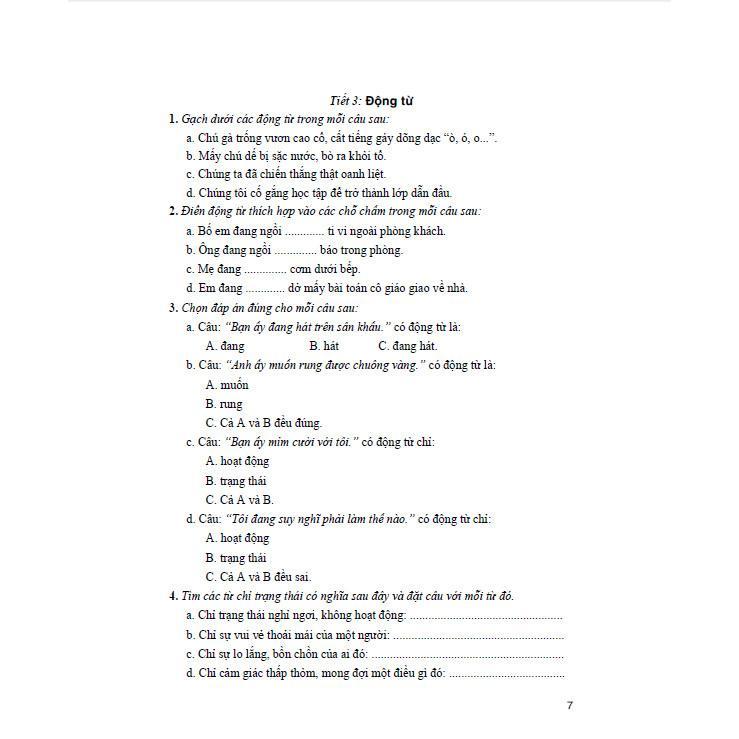 mỗi tiết học, chúng tôi có đưa ra các dạng bài tập cho từng nội dung kiến thức được phát triển và nâng cao từ các dạng bài tập có trong sách giáo khoa. Đặc biệt, khác với những cuốn sách khác, cuốn sách này chúng tôi có đưa thêm nội dung phần đọc hiểu nhằm giúp học sinh khai thác sâu hơn về nội dung các bài tập đọc trong sách giáo khoa, từ đó giúp các em hiểu và cảm thụ các bài đọc một cách có hiệu quả. Tuỳ theo từng đối tượng học sinh mà giáo viên và phụ huynh có thể cho các em trả lời các câu hỏi ở các mức độ khác nhau. Trong quá trình xây dựng hệ