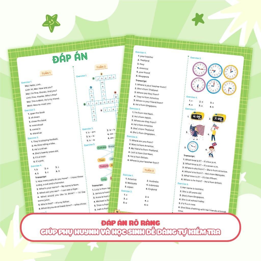 Phần đáp án chi tiết ở cuối sách giúp phụ huynh và các con có thể tự đối chiếu và đánh giá sau khi hoàn thành bài tập, từ đó có phương pháp ôn luyện phù hợp cho con.
