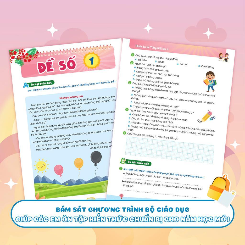 - Bám sát chương trình giảng dạy: Phiếu Ôn Hè Tiếng Việt Lớp 4 được biên soạn dựa trên chương trình của Bộ Giáo dục và Đào tạo (GD&ĐT). Điều này đảm bảo rằng các em học sinh có thể ôn tập và củng cố kiến thức một cách hiệu quả, chuẩn bị tốt nhất cho năm học mới.