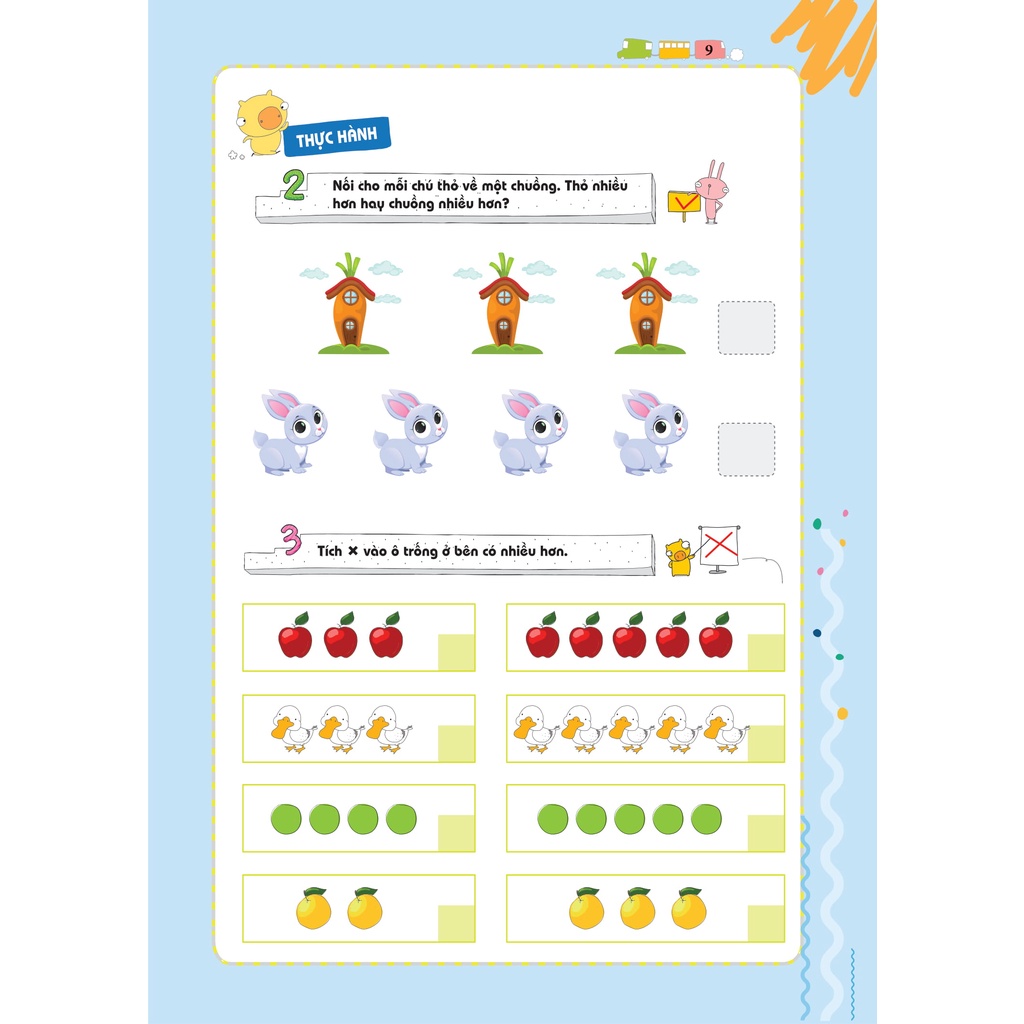 Nội dung mỗi bài học được thiết kế sống động, các bé sẽ được thực hành qua nhiều hoạt động đơn giản nhưng gần gũi và mang lại nhiều lợi ích cho việc phát triển tư duy của bé. Một số hoạt động bé được thực hành như: Tô màu, ghép nối, thực hành các phép so sánh đơn giản, đếm số, nhận biết mặt số, viết số, hình học….
