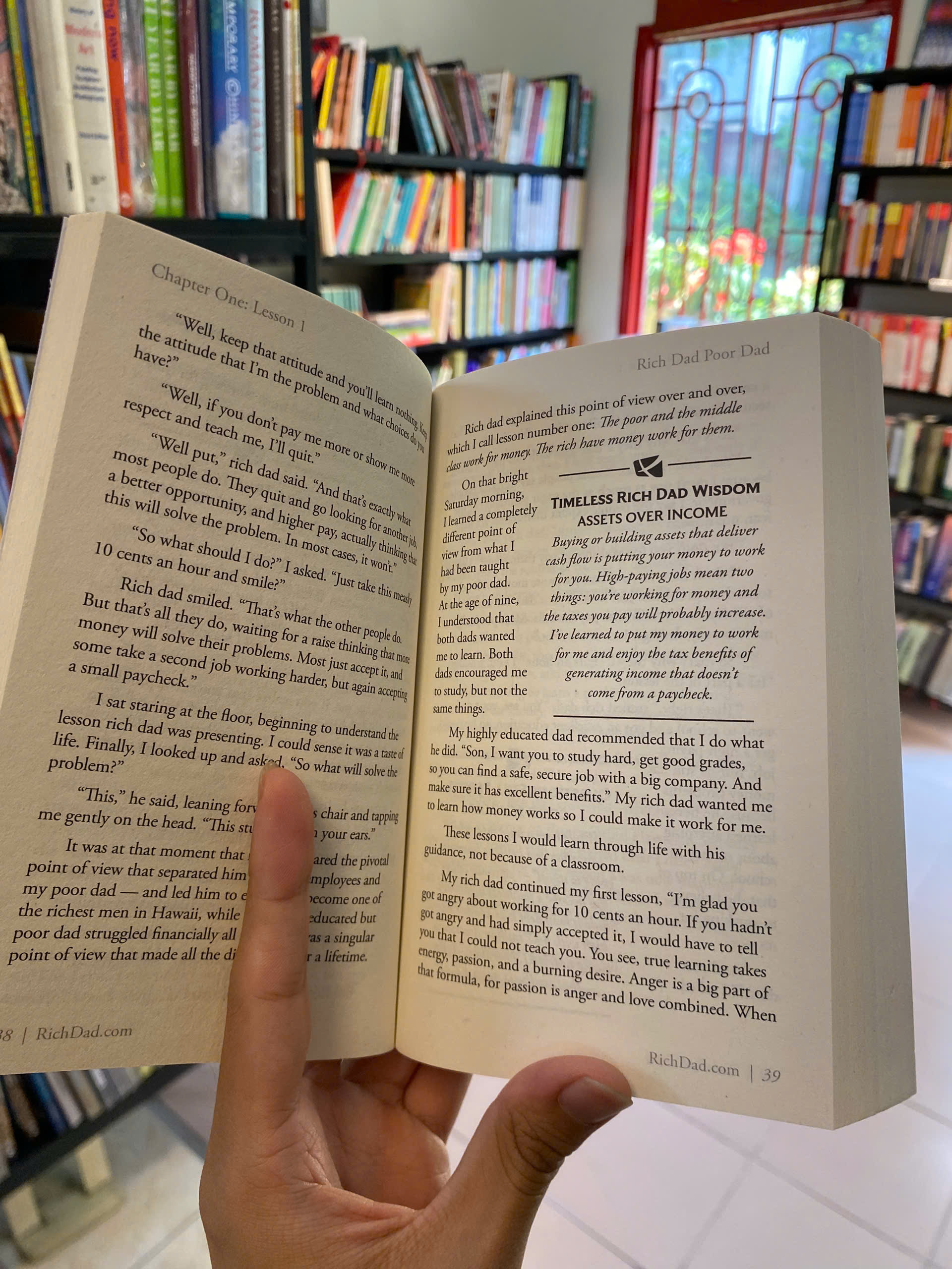 Rich Dad Poor Dad is Robert's story of growing up with two dads — his real father and the father of his best friend, his rich dad — and the ways in which both men shaped his thoughts about money and investing. The book explodes the myth that you need to earn a high income to be rich and explains the difference between working for money and having your money work for you.
