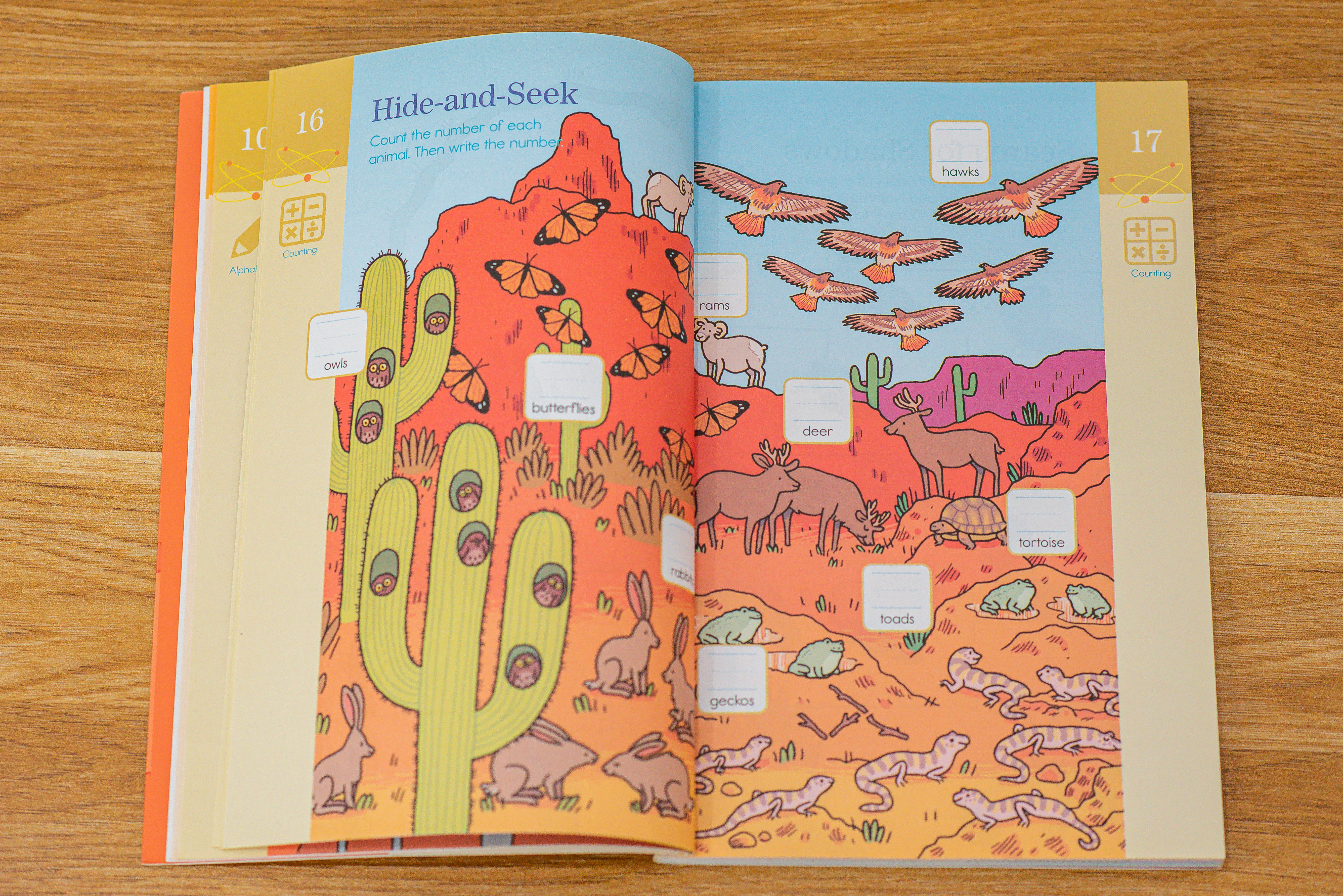 GRADE K&1: bài tập dựa trên ngữ âm, đọc, viết, đếm, hình dạng, kỹ năng bản đồ, môi trường sống, mùa, và nhiều hơn nữa, với các minh họa vui nhộn xuyên suốt