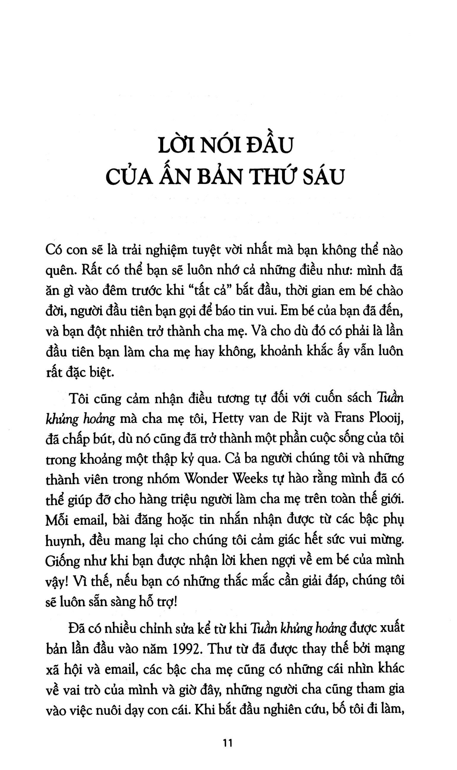 Các bậc phụ huynh hãy đọc sách để hiểu những cơ sở khoa học của tuần khủng hoảng, cũng như sự kỳ diệu của nó; để hiểu và thông cảm cho con khi con trải qua thời kỳ tập trung phát triển kỹ năng và tinh thần từ bên trong nên quên hết cả ăn và ngủ; để nhận biết khi các con học cách hóng chuyện, học lẫy, học bò, học ngồi hoặc học đi.