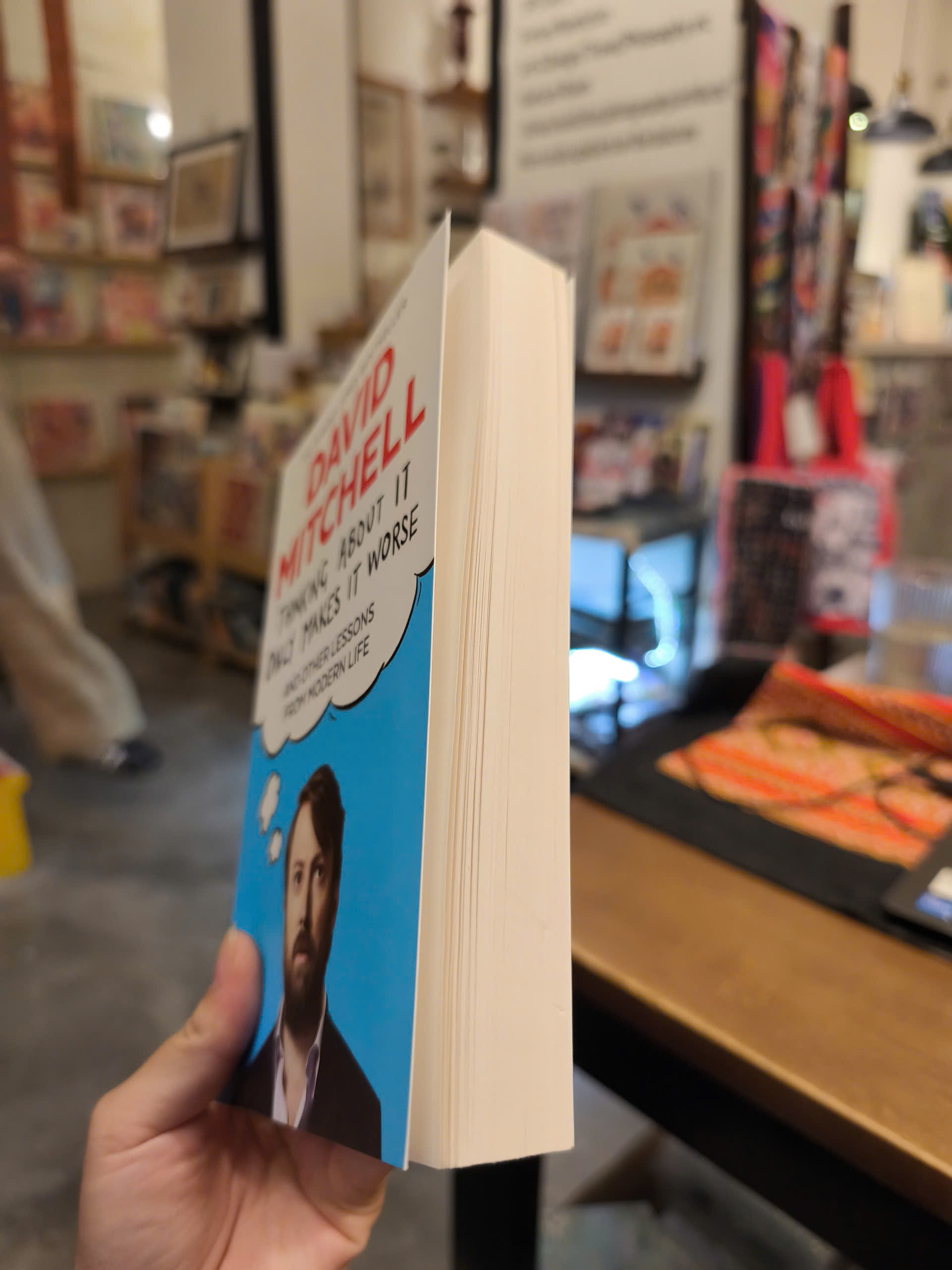 Gọi một tên trộm là dũng cảm thì có gì sai? Tại sao mọi người lại quá bận tâm đến việc chửi thề? Tại sao những dấu hoa thị trong câu đó lại khiến nó trở nên ổn? Tại sao rất nhiều người muốn ngăn cản người khác làm những việc, và làm thế nào để ngăn cản họ làm những việc đó? Tại sao mọi bộ phim và chương trình truyền hình đều là phần tiếp theo hoặc bản làm lại? Tại sao chúng ta lại quá phụ thuộc vào sự giải trí liên tục đến mức ai đó đã tạo ra kem đánh răng sô cô la? Có cách nào để làm gì đó với Internet không? Những câu hỏi này và nhiều câu hỏi khác làm phiền David Mitchell khi anh ấy làm chúng ta thích thú với chuyến tham quan những điều phi lý của cuộc sống hiện đại - từ Ryanair đến Downton Abbey, ngày thể thao đến hút thuốc,  hạt nhân đến nghi thức điện thoại, UKIP đến xúc xích làm từ mèo. Hài hước, khiêu khích và được chiếu với một lượng lớn lý lẽ thường tình mới mẻ, Thinking About It Only Makes It Worse ca ngợi và đồng cảm với tình trạng của mọi thứ trong quốc gia không hoàn toàn huy hoàng của chúng ta.