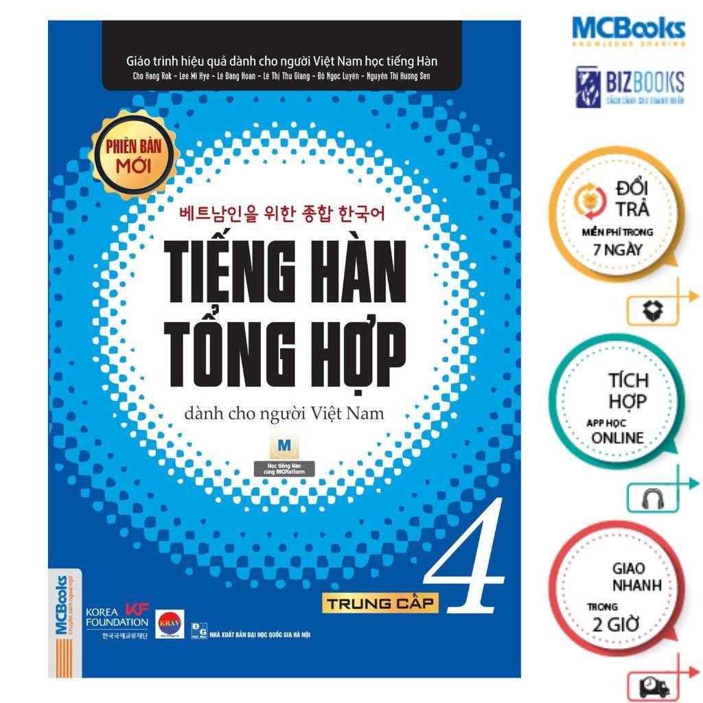 Giáo trình tiếng Hàn tổng hợp Trung cấp 4 thuộc bộ giáo trình tiếng Hàn tổng hợp dành cho người Việt Nam phiên bản mới – màu xanh dương. Bộ giáo trình gồm 6 cuốn và được chia làm 3 cấp độ từ cơ bản đến nâng cao là sơ cấp – trung cấp – cao cấp. Giáo trình tiếng Hàn tổng hợp trình độ trung cấp gồm 2 cuốn: 3 và 4. Sau khi hoàn thành các bài học ở cuốn Trung cấp 3, người học sẽ tiếp tục nâng cao trình độ của mình với cuốn Trung cấp 4.