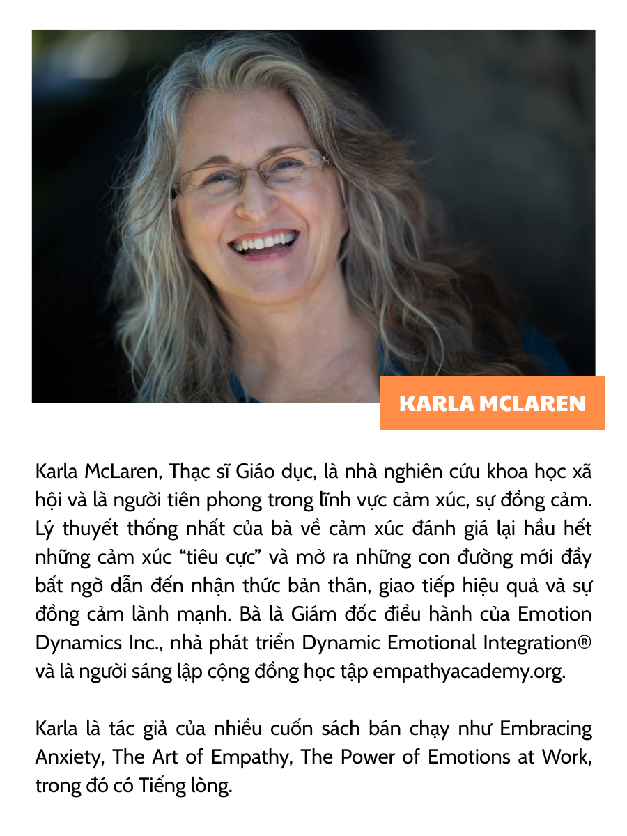 Nhà nghiên cứu, nhà giáo dục Karla McLaren cho biết: “Thông thường, chúng ta hoặc là kìm nén cảm xúc hoặc để chúng bộc phát.” […] “Điều mà nhiều người trong chúng ta chưa bao giờ được dạy là các kỹ năng cơ bản để tôn trọng và hiểu được những cảm xúc sâu sắc, mạnh mẽ của m.ình”. Trong cuốn Tiếng lòng, McLaren giúp chúng ta khám phá nhiều hơn so với việc đặt tên hoặc quản lý cảm xúc, bà hướng dẫn cách lắng nghe những thông điệp trong mỗi cảm xúc, suy ngẫm về những câu hỏi và đưa sự khôn ngoan của chúng vào cuộc sống của chúng ta.