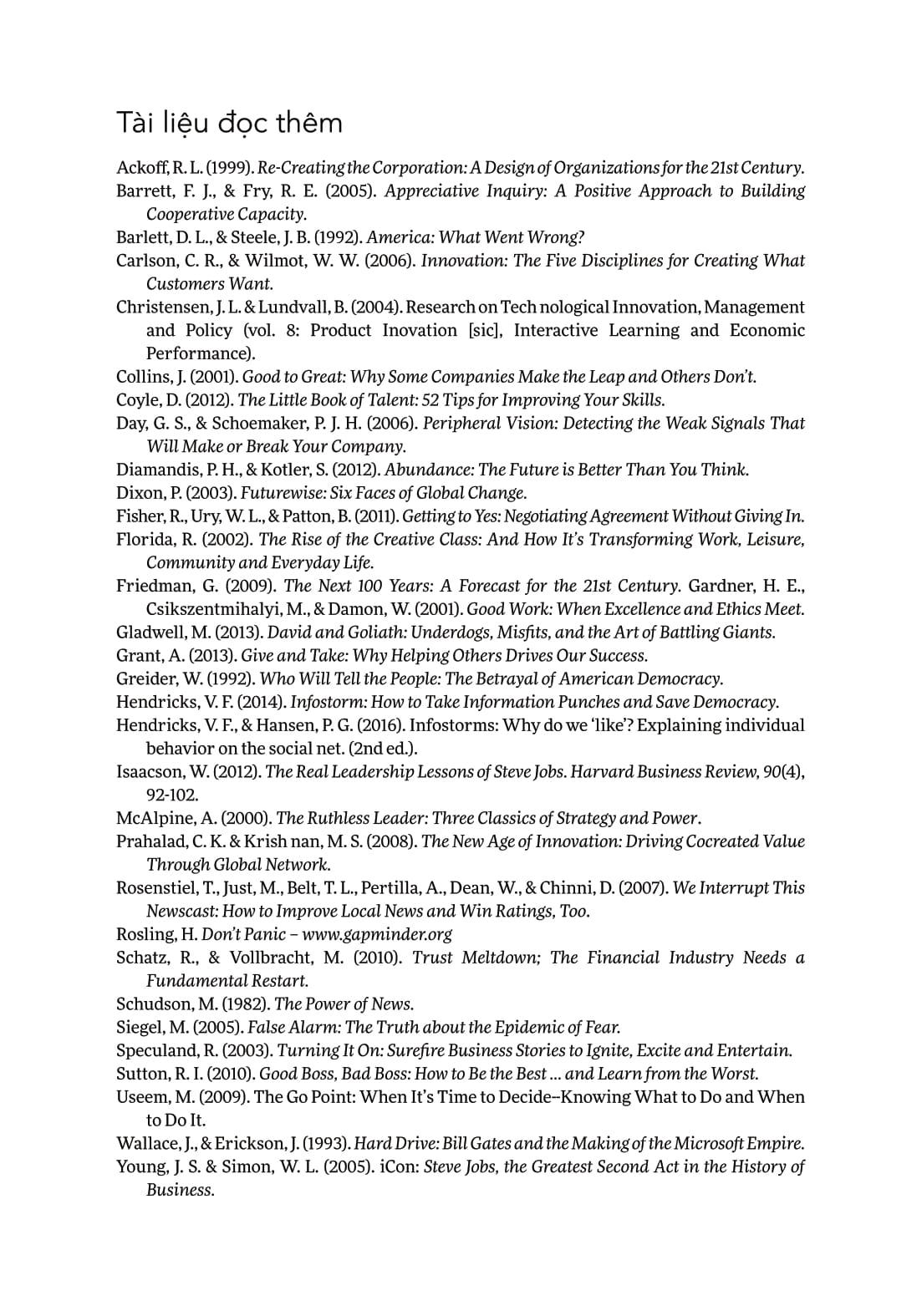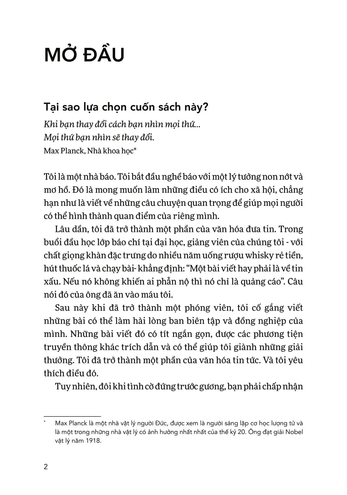 Cuốn sách có ích cho một CÁCH LÀM TRUYỀN THÔNG MỚI, khi truyền thông dễ dàng tràn ngập "tin xấu" (negative) và sự lên ngôi của chủ nghĩa dân tuý (populism) dần dà tạo nên mối hoài nghi ngày càng lớn trong dư luận.