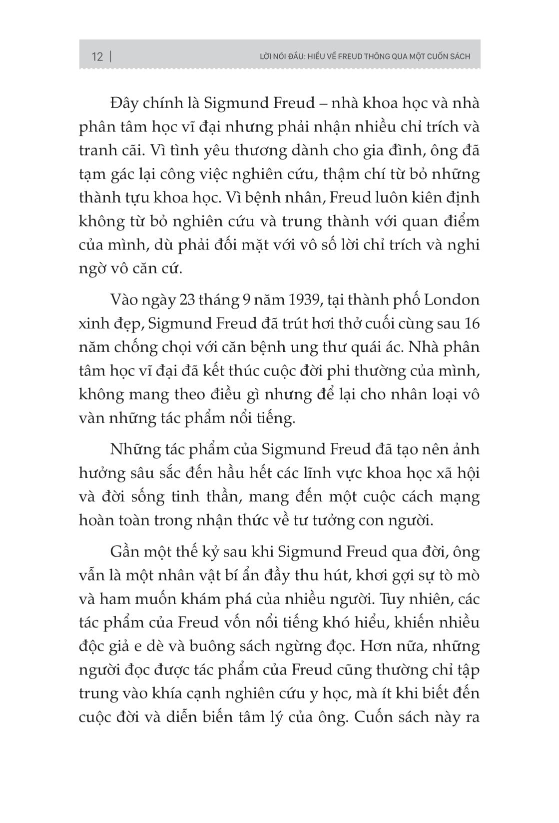 “Không có chuyện lịch sử tâm lý học ba trăm năm tới thiếu tên Freud mà vẫn được xem là lịch sử chính thống. Và đó chính là tiêu chuẩn về sự vĩ đại: danh tiếng sau khi mất”. Đủ để thấy sức ảnh hưởng của Sigmund Freud trong giới.