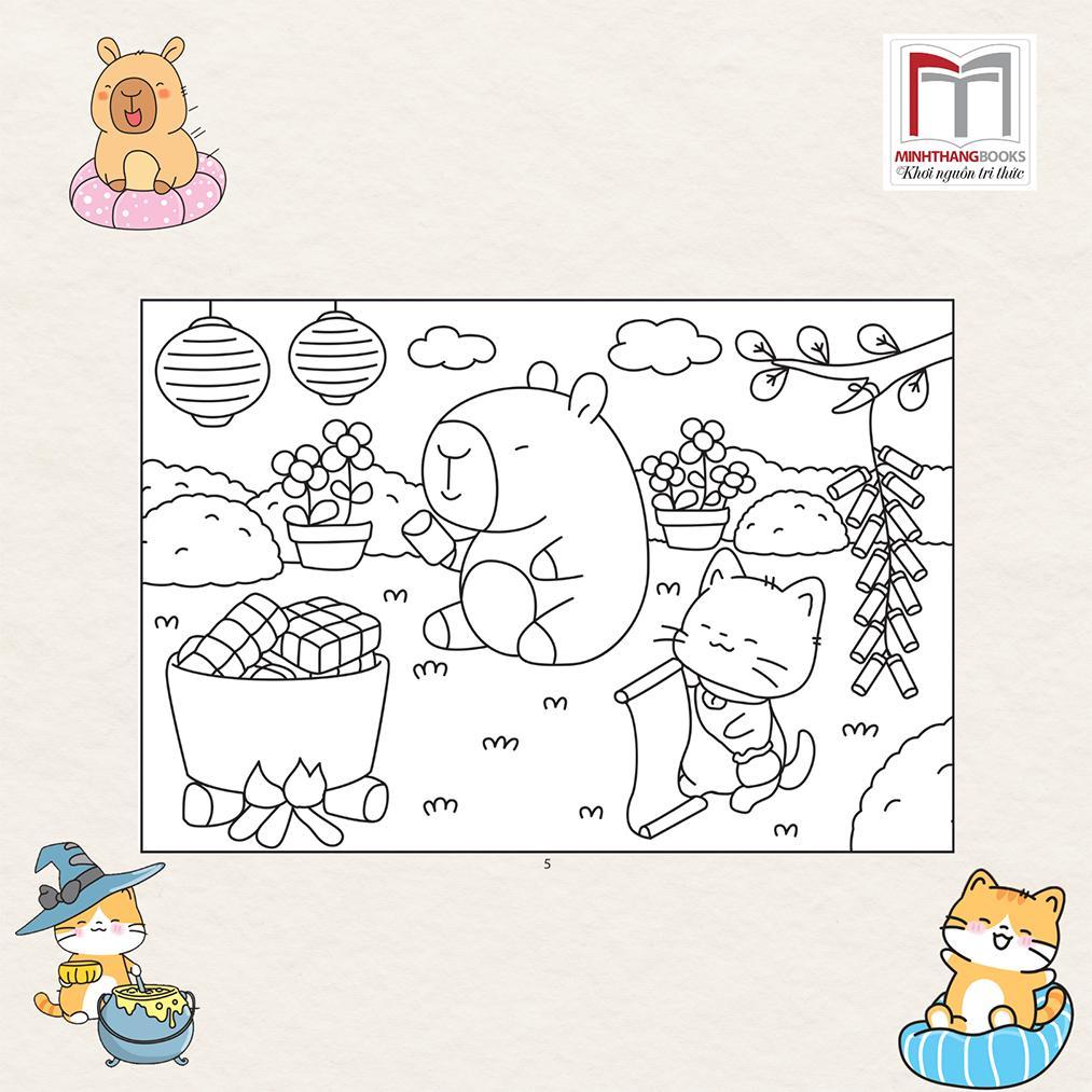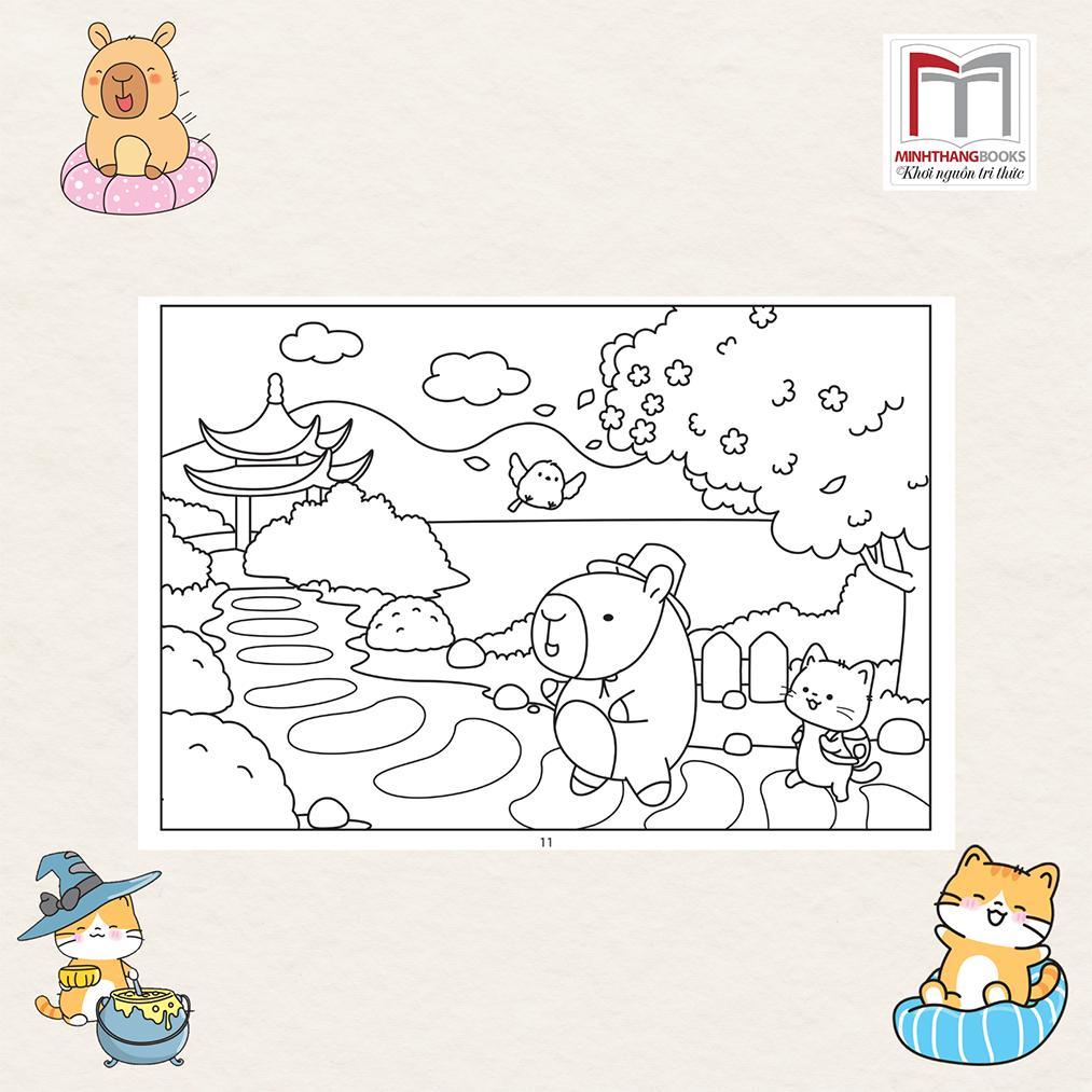 ✨Sách Tô Màu - Bốn Mùa Của Capybara Và Mèo Cam - Minh Thắng