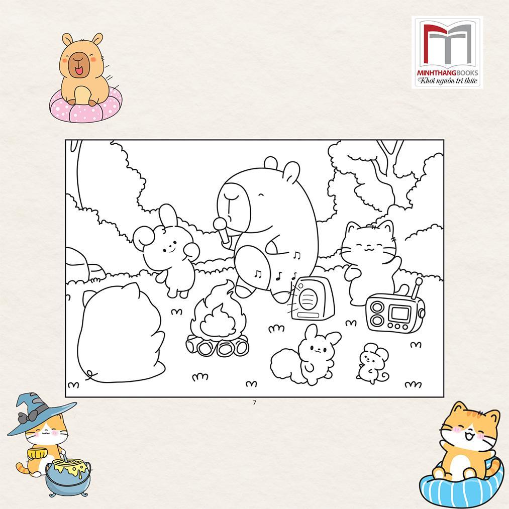 Săch tô màu Capybara và Mèo Cam