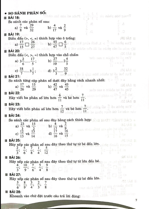 Toán nâng cao lớp 5 - Bài 1: So sánh phân số