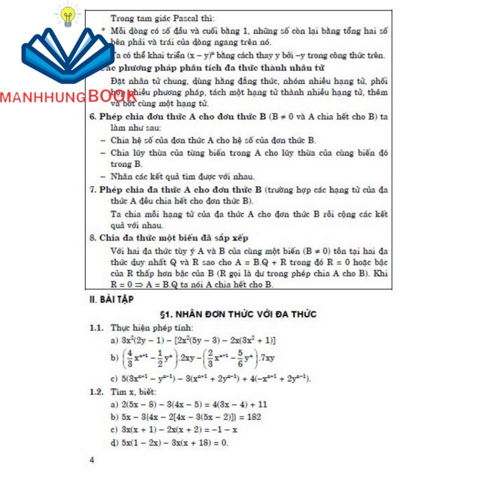 Công ty Học Liệu Sư Phạm giới thiệu: Giới thiệu sách: Nội dung gồm có: Tập 1 Chương I. Số hữu tỉ Chương II. Số thực Chương III. Góc và các đường thẳng song song