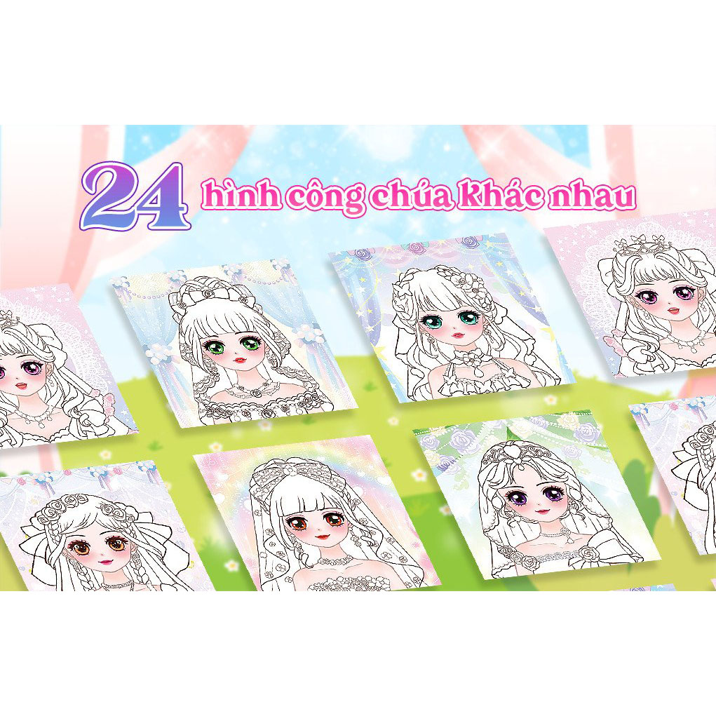 Bộ sách trang điểm công chúa gồm có 5 cuốn, mỗi cuốn có 24 hình công chúa giúp các bé thỏa sức sáng tạo, make up.