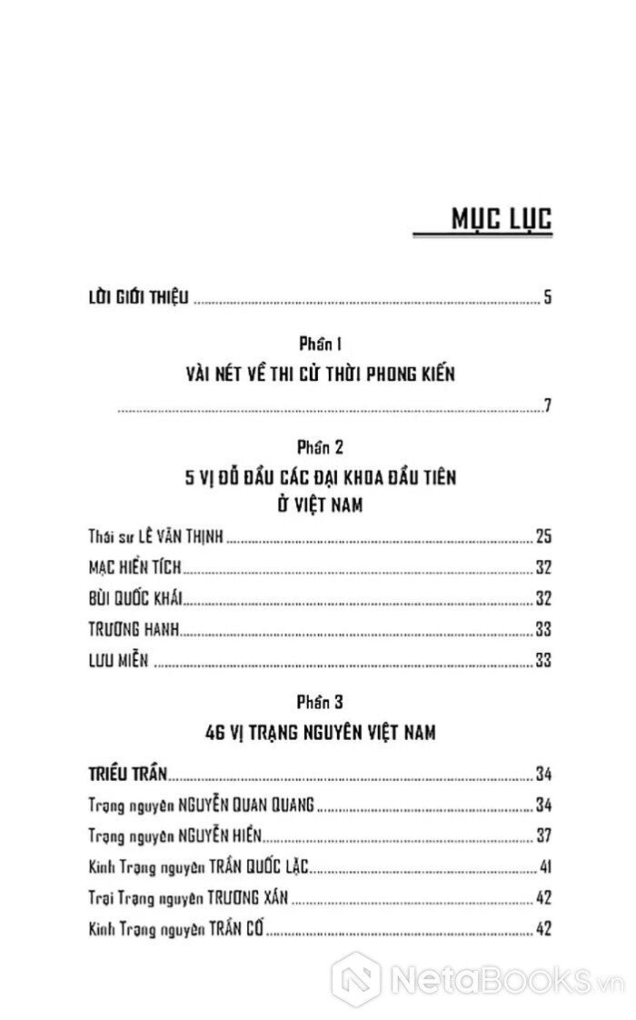 Tác giả: Nhiều tác giả Ngôn ngữ: tiếng Việt Số trang: 232 Năm xuất bản: 2024 Nhà xuất bản: Hà Nội Kích thước: 13 x 20 m Hình thức: bìa mềm Cuốn sách Trạng nguyên Việt Nam đem đến cho bạn đọc câu chuyện về những học trò nghèo nỗ lực học hành để đổ đạt như Trạng nguyên Nguyễn Nghiêu Tư, Nguyễn Trực,... Chuyện về Trạng nguyên Nguyễn Hiền tiêu biểu cho những người trẻ tuổi trong lịch sử Việt Nam có tài cao, danh vọng lớn, đổ trạng ở tuổi 13. Chuyện về thiên tài toán học Lương Thế Vinh với Khải minh toán học và Đại thành toán pháp; Trạng nguyên Trần Tất Văn viết văn đuổi được giặc; Trạng nguyên Nguyễn Bỉnh Khiêm với những giai thoại sấm Trạng Trình...