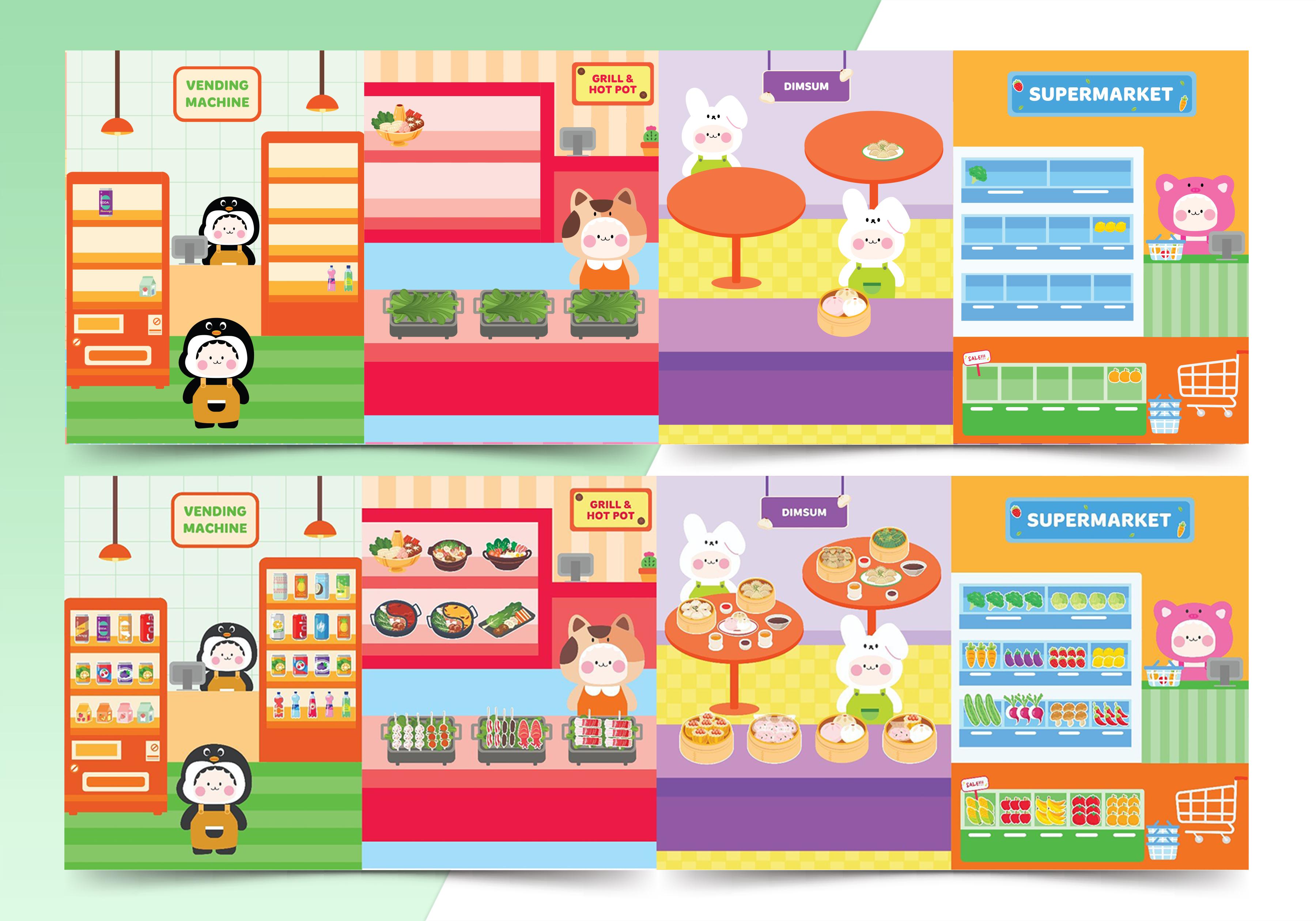 Phát triển kỹ năng tập trung và tư duy logic thông qua việc sắp xếp sticker theo từng cửa hàng ẩm thực.