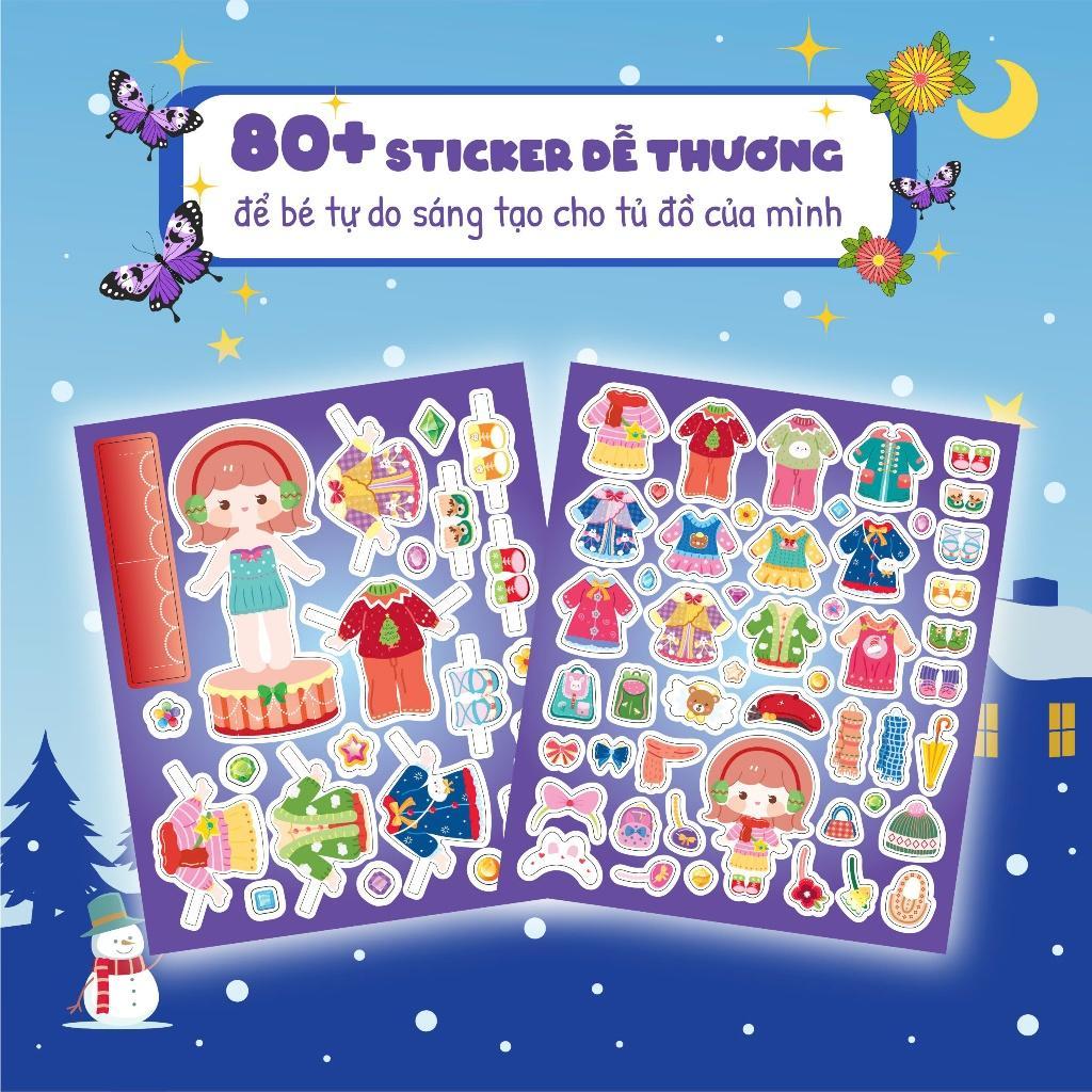 Sticker dễ thương: Gồm nhiều trang phục và phụ kiện phong phú, giúp bé thoải mái sáng tạo.