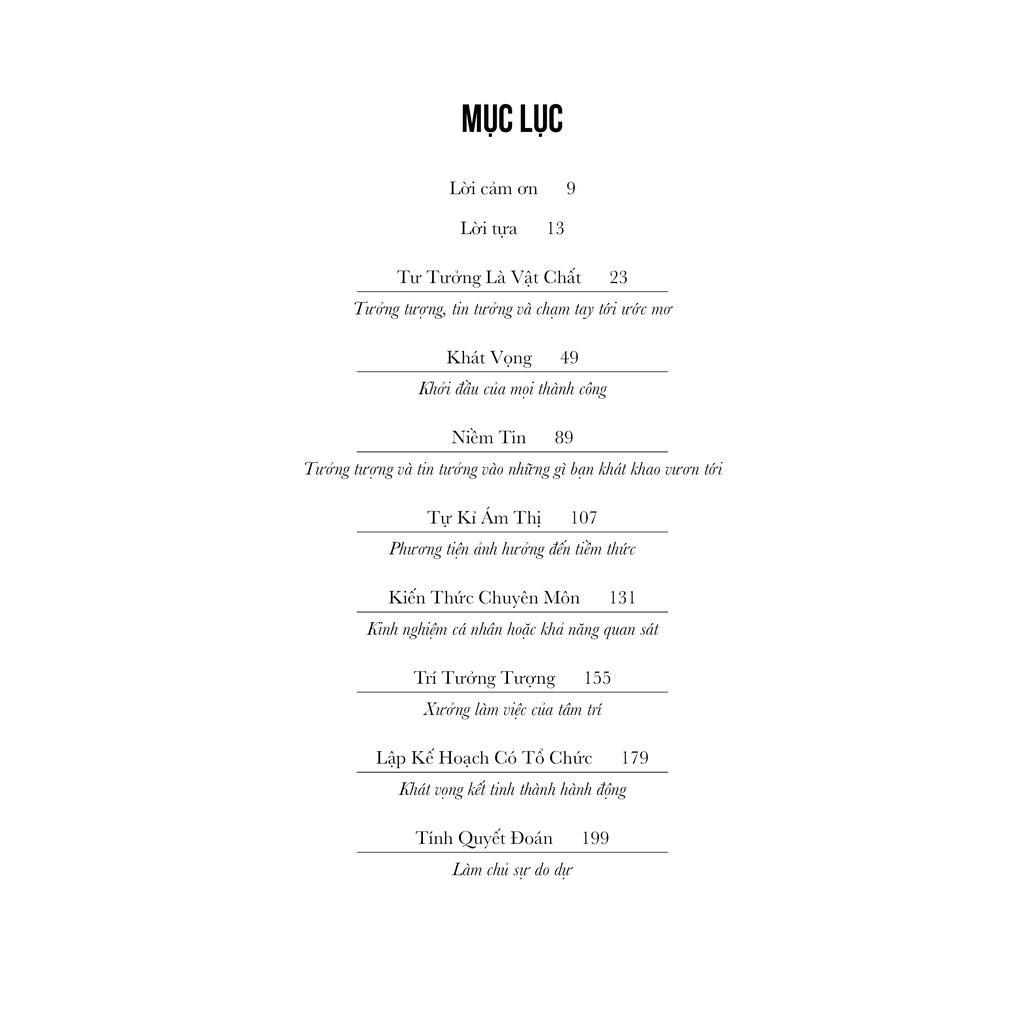 Mỗi chương kết thúc bằng các bài tập và bước hành động để bạn có thể áp dụng những gì mình vừa học được, giúp bạn biến khao khát thành động lực tiến lên phía trước. Trong quá trình đọc, hãy ghi lại những suy nghĩ và ý tưởng của bạn, làm rõ mục tiêu và sắp xếp kế hoạch.
