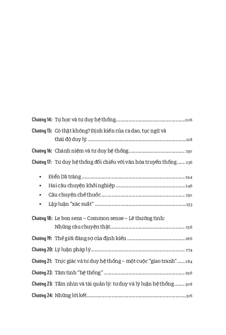 Cuốn sách là viên gạch nối chúng ta với nhau, với xã hội chung quanh, với môi trường toàn cầu, tạo nên một thói quen mà chúng ta đã mất đi hoặc chưa bao giờ có: đó là khả năng lập luận, khả năng minh hoạ, chứng minh, ẩn dụ, suy luận... Chúng ta cần lý trí hoá trở lại những điều chúng ta thường vô tư nhận định mà không dựa vào một nền tảng căn cơ nào, ngoài việc nhân danh trực giác thuần tuý, hoặc tâm linh. Sách sẽ mang hai khía cạnh tưởng như tách bạch hoàn toàn, nhưng thật ra lại bổ sung cho nhau: đó là tư duy hệ thống và những phương pháp suy luận. Cả hai đều cần sử dụng trí tuệ, cả hai đều hiểu vai trò quan trọng của trực giác, nhưng cả hai sẽ cần huy động khả năng trí tuệ liên quan đến lập luận duy lý vô cùng cần thiết.