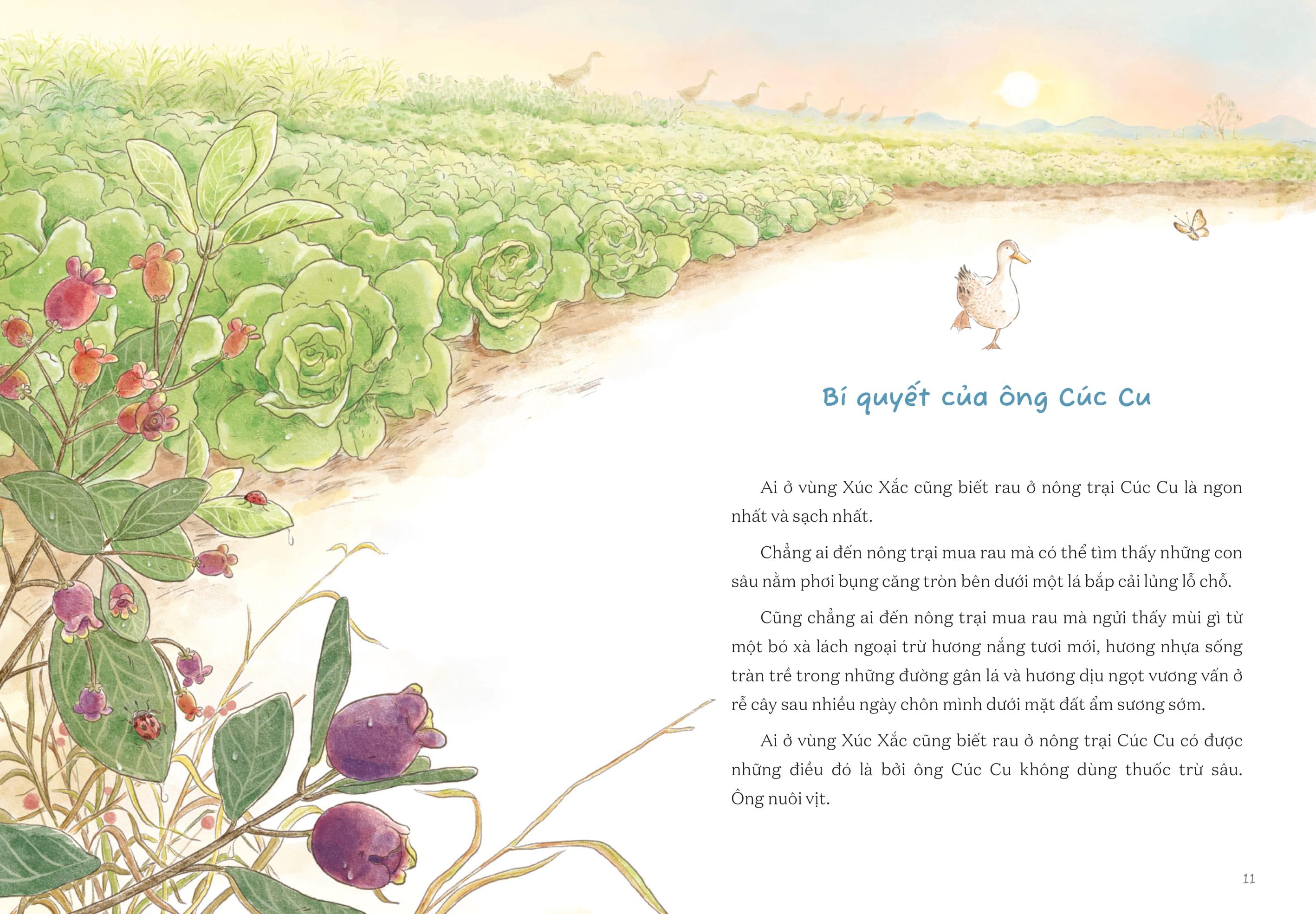 Nhưng rồi, nông trại Cúc Cu sẽ phải đối mặt với một kẻ trộm láu lỉnh, họ sẽ phải làm thế nào để bảo vệ những ruộng rau của m.ình? "Từ những ruộng rau ở nông trại Cúc Cu" tràn ngập tình yêu thiên nhiên, ca ngợi tình bạn và lòng bao dung. Giọng văn dí dỏm, tinh tế, cùng những bức tranh minh họa ngọt ngào, "Từ những ruộng rau ở nông trại Cúc Cu" thích hợp để đọc trước giờ đi ngủ hay cùng đọc với bạn bè.